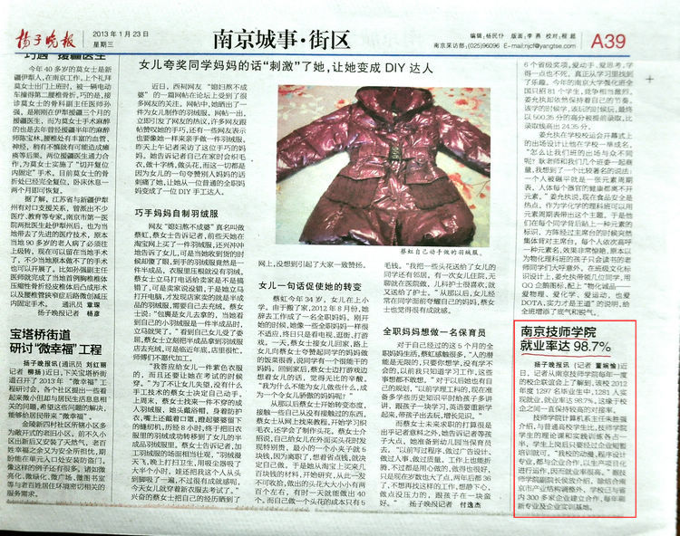 《扬子晚报》A39版—千亿官方网站就业率达98
