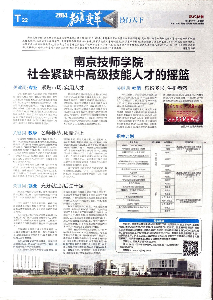 《现代快报》T22版—千亿官方网站社会紧缺中高级技能人才的摇篮