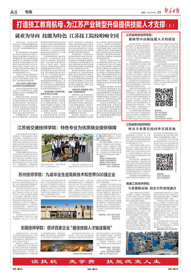 《新华日报》A8版—江苏省千亿官方网站:紧缺型中高级技能人才的