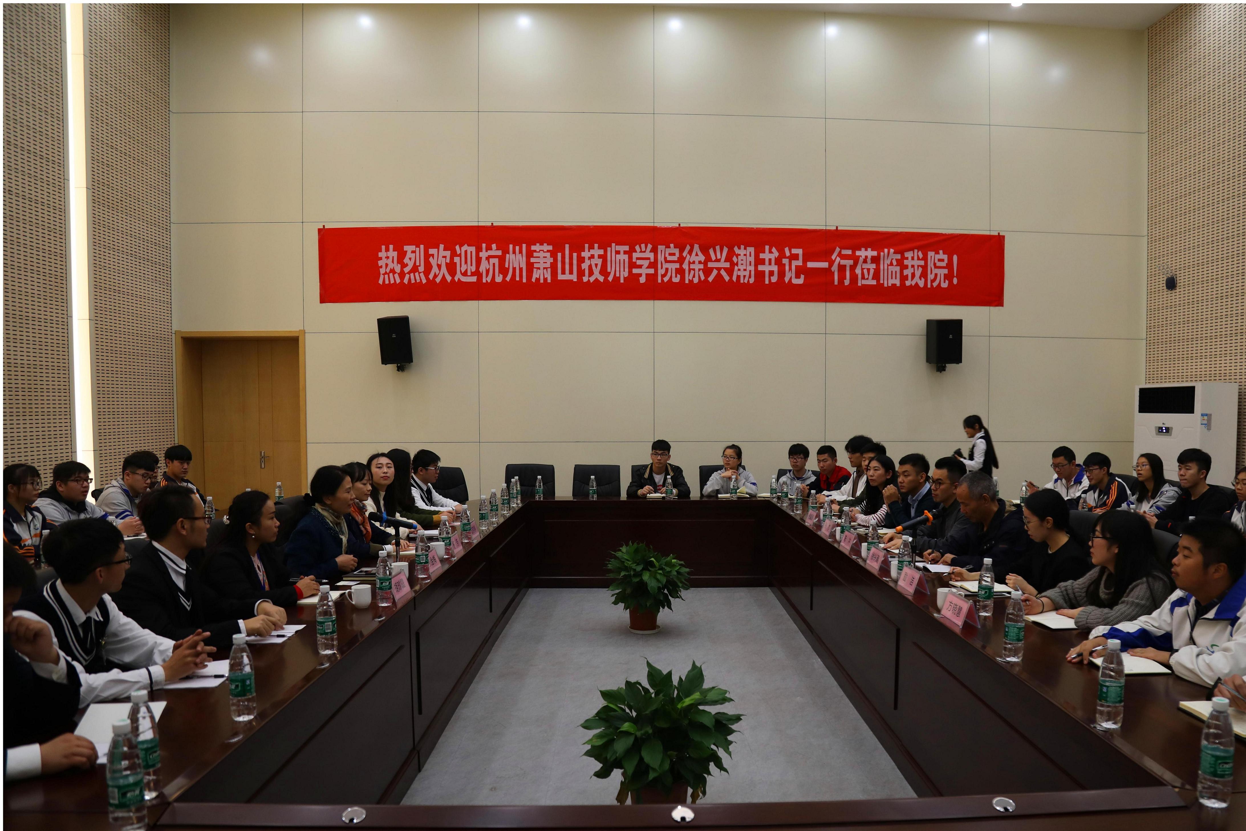 11月19日,杭州萧山技师学院徐兴潮副书记一行近40名团学师生干部来我院开展团学工作交流,院党委副书记、副院长张金梅热情接待了来访团。