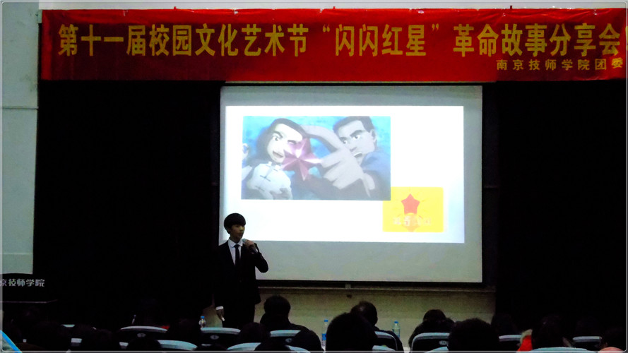 2016年12月13日是第三个南京大屠杀死难者国家公祭日,在这个特殊的日子里,我院团委组织举办第十一届文化艺节“闪闪红星”革命故事分享会,院组织人事处丁辉副处长、学生工作处孙京宁副处长、院团委胡珍霞书记、杨芳副书记,语文教研组组长史香云老师担任比赛评委。