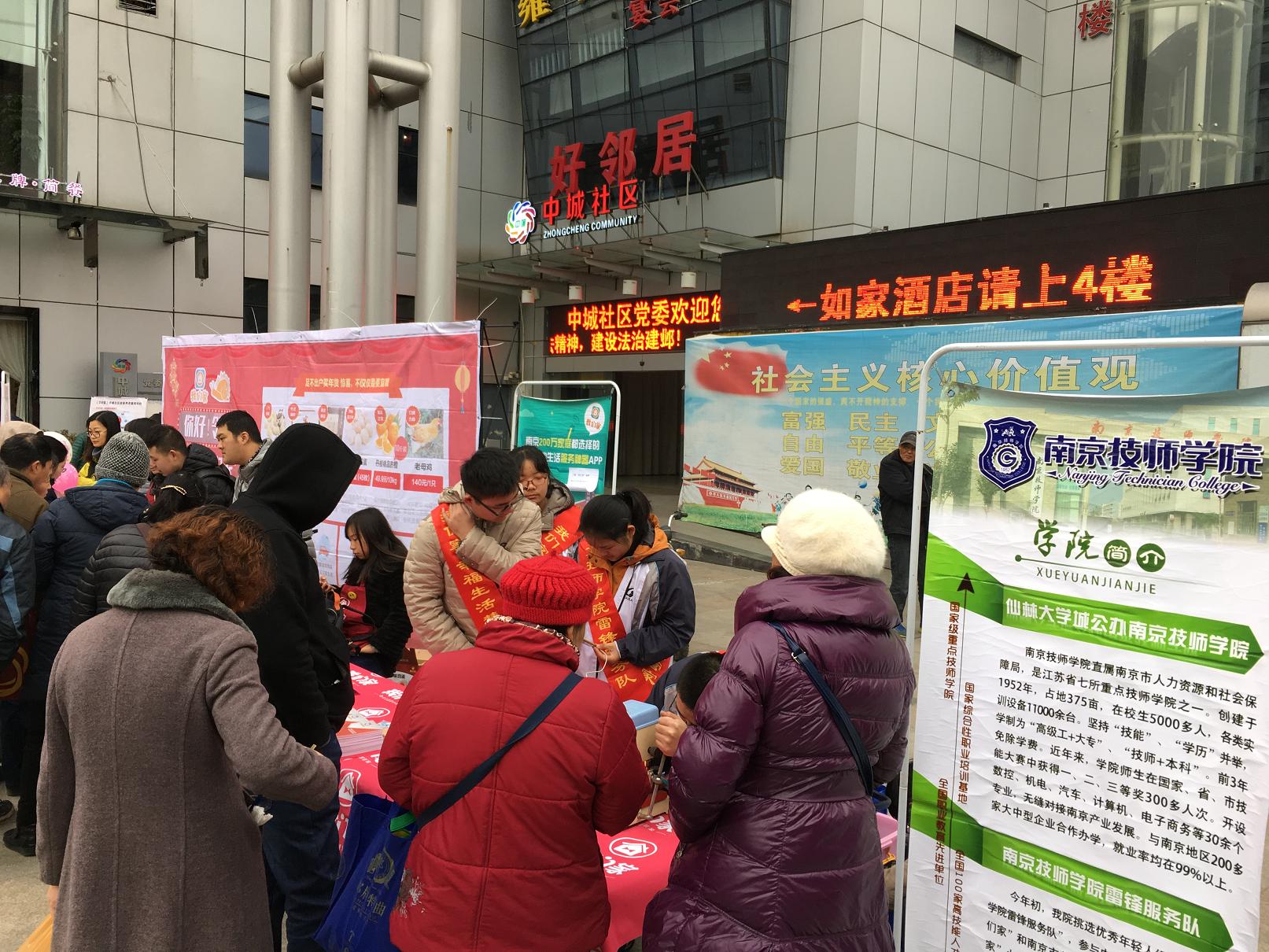 12月24日上午我院师生组成的“千亿官方网站雷锋服务队”继续参与了由南京报业集团龙虎网“我们家”智慧社区APP和各社区联合主办的小区市集活动,带着神秘的“圣诞礼物”走进了建邺区沙洲街道中城社区好邻居生活广场,为社区的居民送上了一份惊喜。