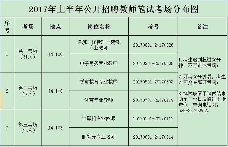 千亿官方网站2017年上半年公开招聘教师笔试考场分布图