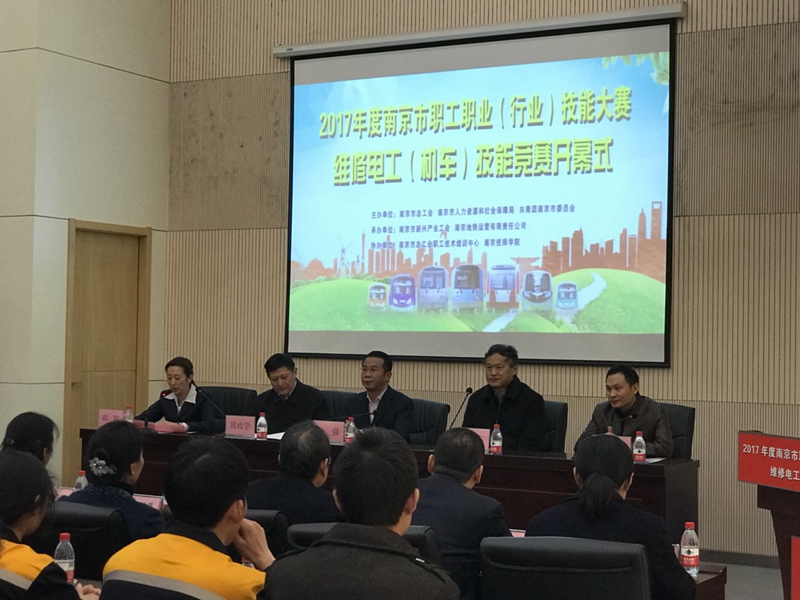 11月21日,2017年度南京市职工职业(行业)技能大赛维修电工(机车)技能竞赛开幕式在我院隆重举行。市总工会党组书记孙强、市人力资源和社会保障局巡视员周政学、团市委副书记王慧、南京地铁集团有限公司党委书记黄晓东、千亿官方网站党委书记张金梅等领导以及来自各参赛选手及领队、工作人员等近60人参加了本次开幕式。