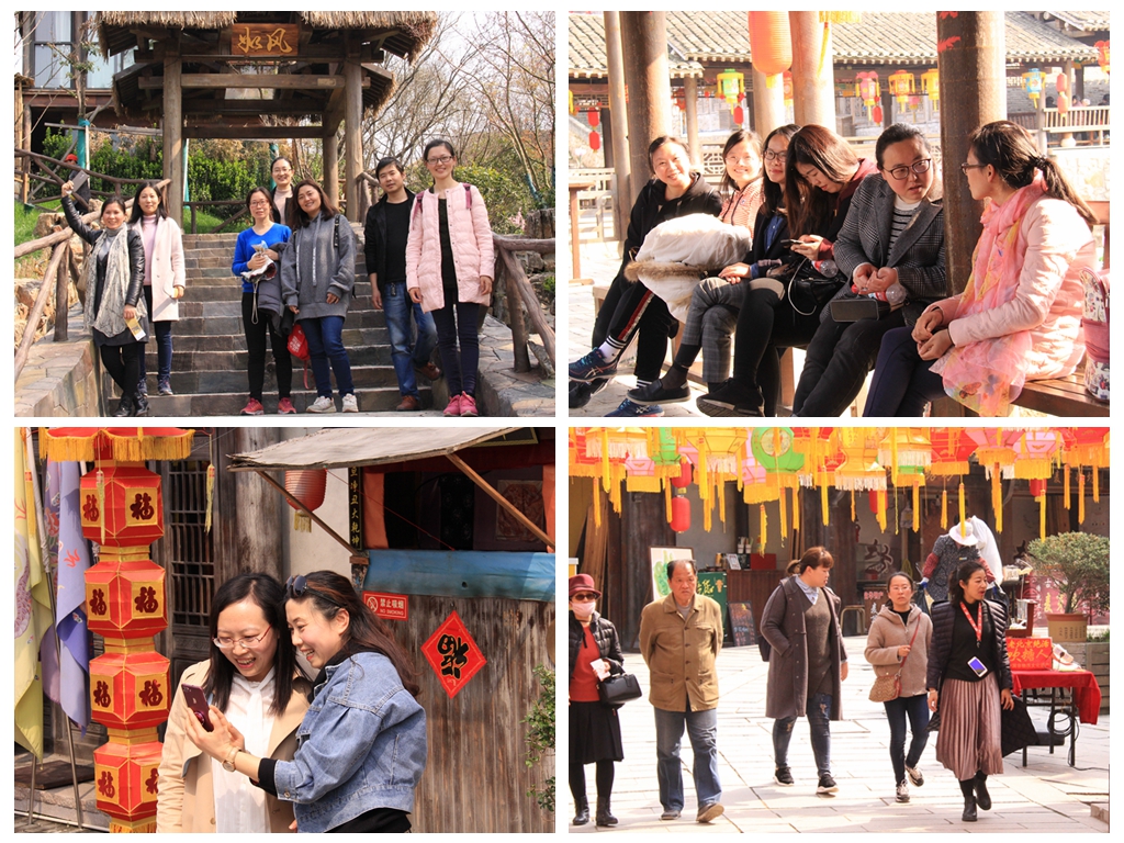 阳春三月,春暖花开。3月23日下午,院工会组织了三八妇女节活动——全体女教工游览宝华山森林公园山下的“千华古村”,我院女教工积极参加此次活动。享有“花山”美誉的宝华山国家森林公园青山绿水“千华古村”作为仿明清古镇,展现出中国明清时期的建筑特色和市井民俗。前来探寻古迹、感受春意的游人络绎不绝。我院教工或是俩人结伴、或是三五成群,在欢声笑语中徜徉在韵味无穷的古镇街巷中,放松身心,沐浴春风与暖阳的交织,感受历史与现实的融合。