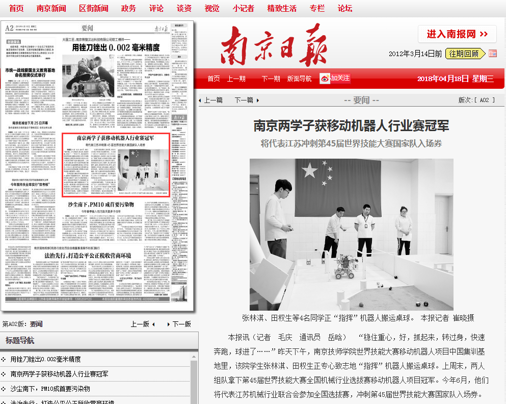 《南京日报》-A02南京两学子获移动机器人行业赛冠军
