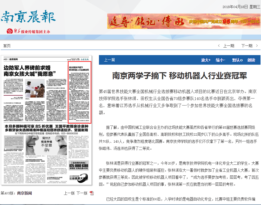 《南京晨报》-A03南京两学子摘下移动机器人行业赛冠军