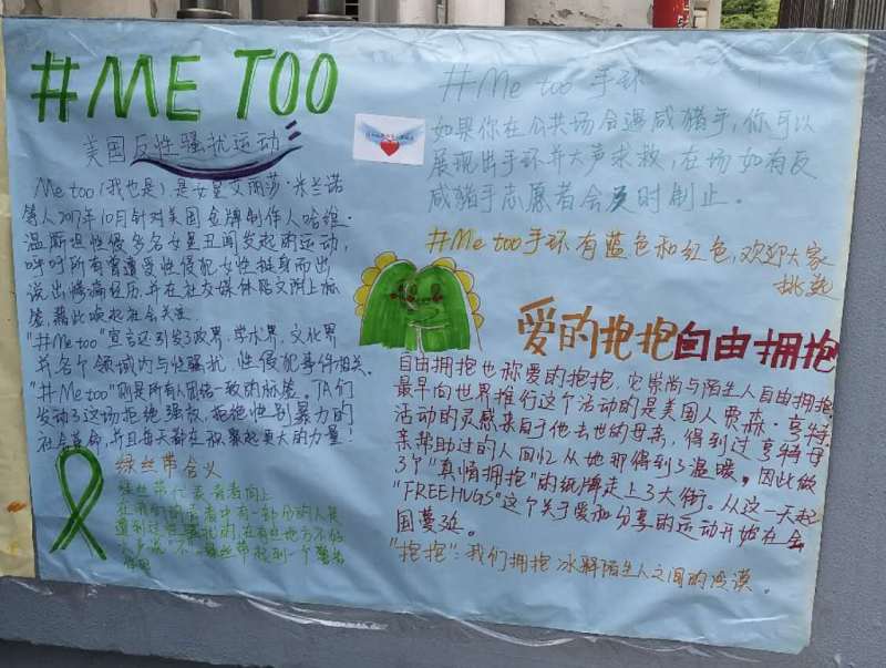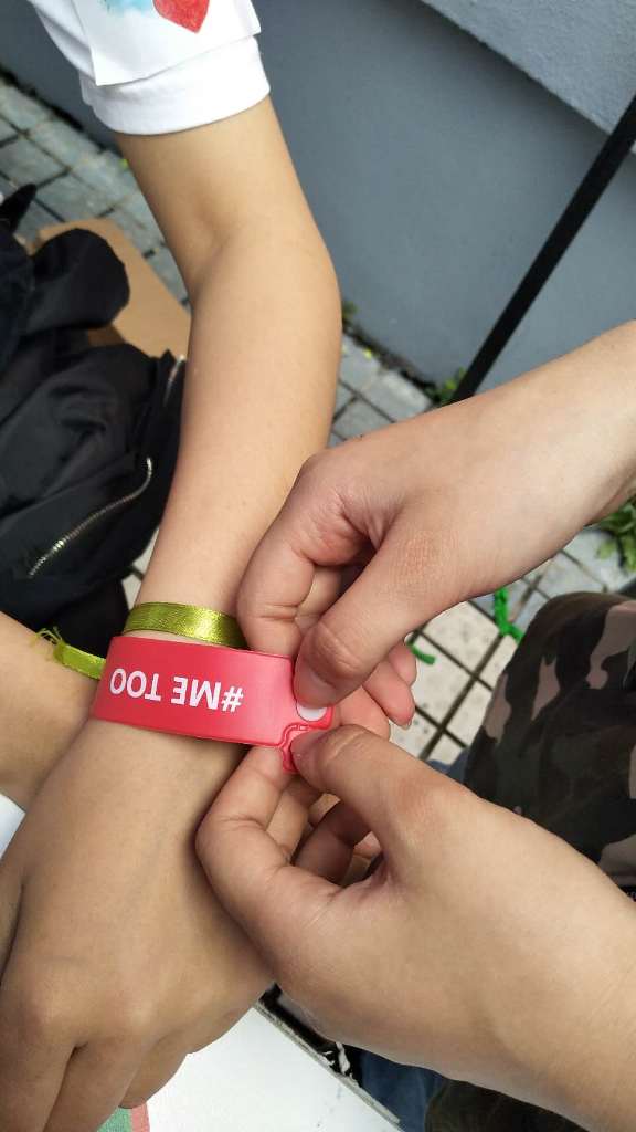 请和我们一起行动起来,带上#ME TOO 手环,系上绿丝带,勇敢的站起来 SAY NO!