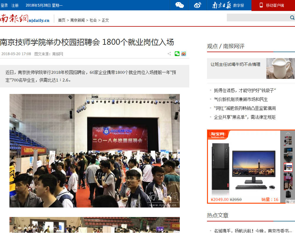 《南报网》-南京新闻社会栏目-千亿官方网站举办校园招聘会 1800个就业岗位入场