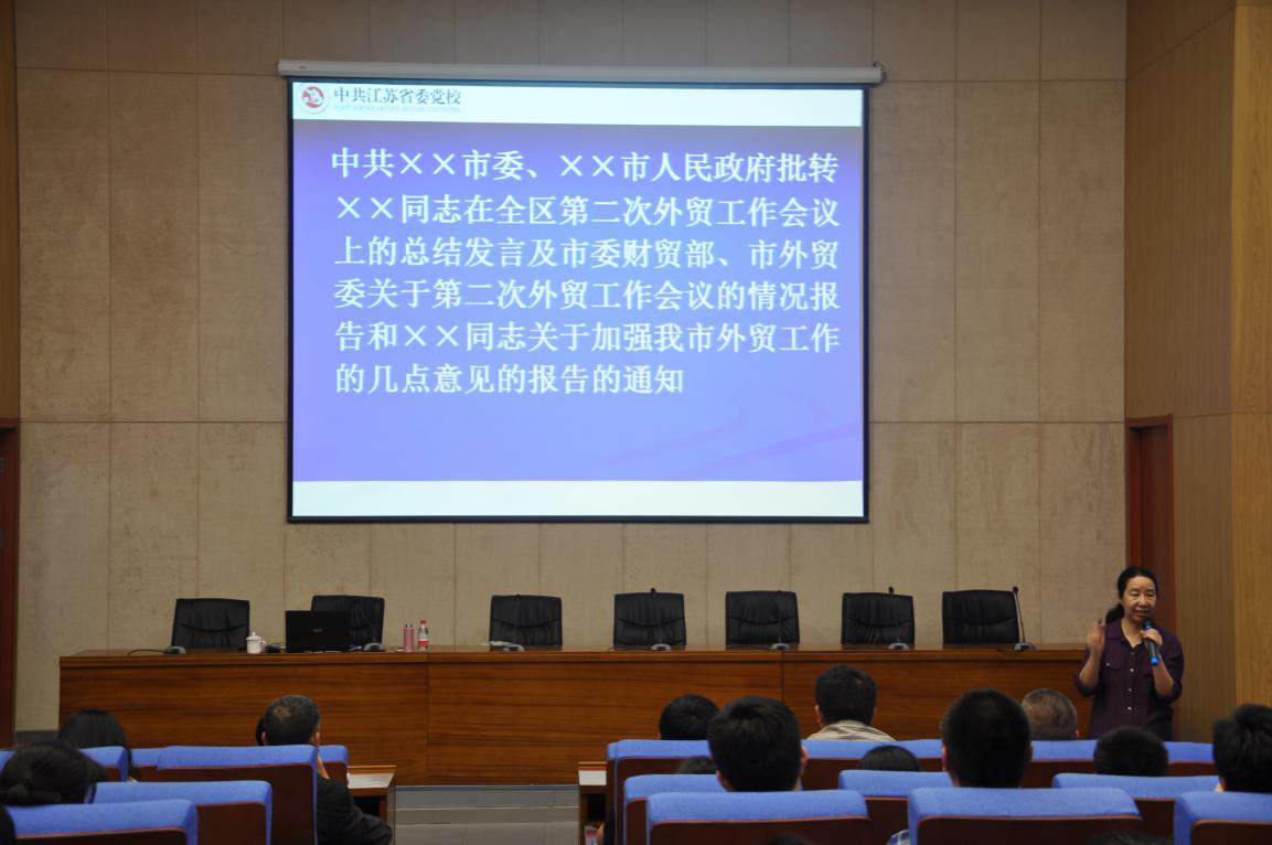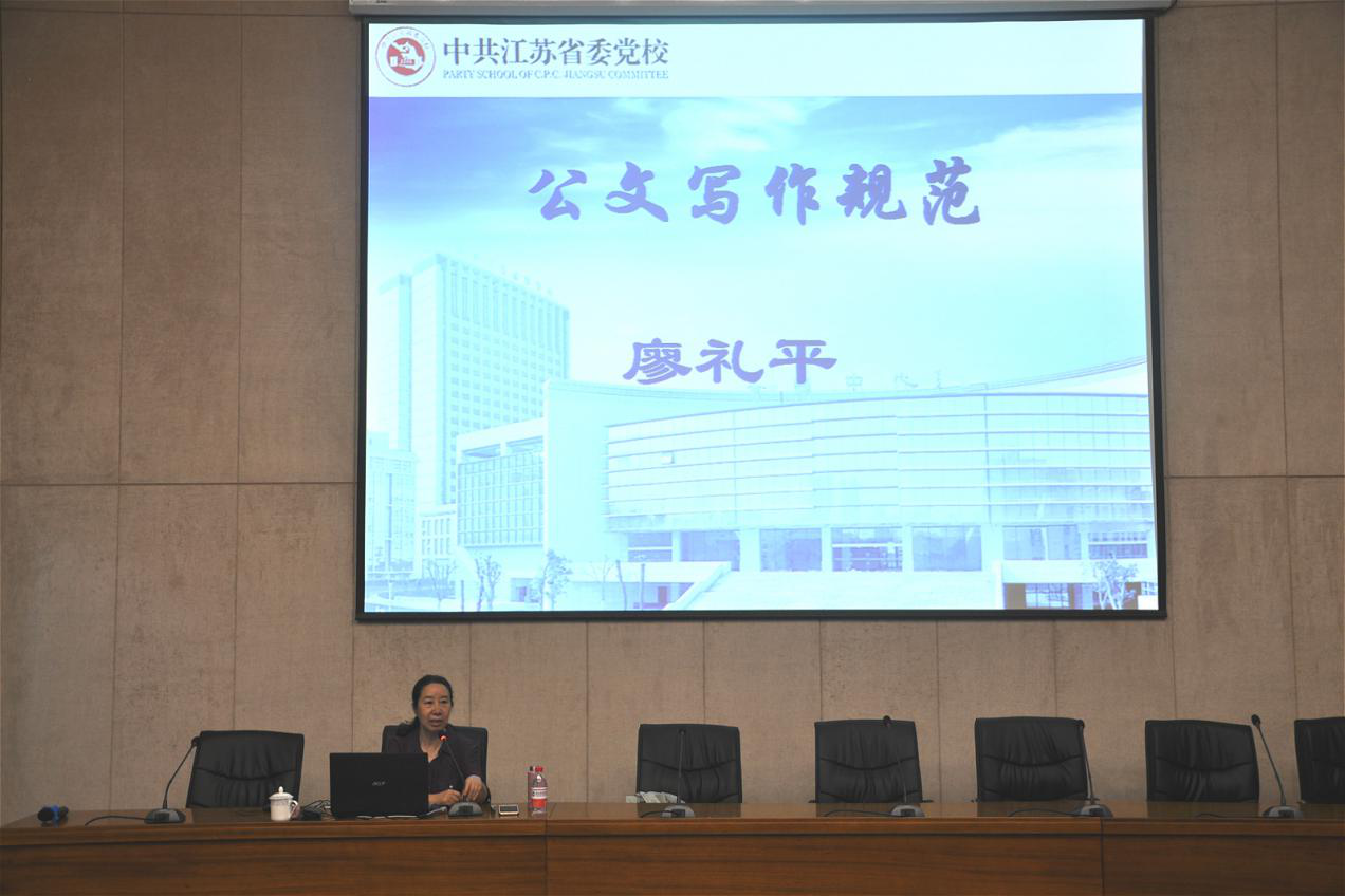 为进一步提高学院教职工公文写作水平,规范公文行文格式,提升公文写作质量,5月25日下午,我院特邀江苏省委党校教授廖礼平开设公文写作规范讲座。讲座由副院长王杭贵同志主持。在校院领导、中层干部、行政工作人员(包括各系部行政工作人员)、各教研组组长、语政德教研组成员以及相关教职工参加了此次讲座。