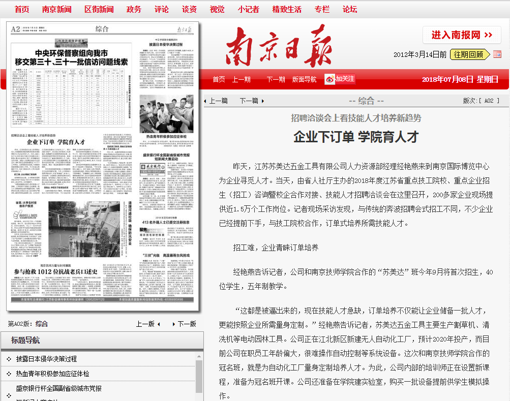 《南京日报》A02-企业下订单 学院育人才