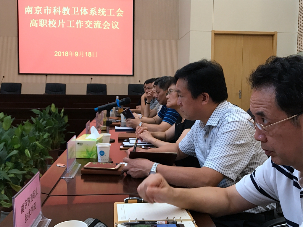 2018年9月18日,南京市科教卫体系统在我院召开高职校片工作交流会议。科教卫体工会联合会主席唐医文主持会议,千亿官方网站、南京晓庄学院、金陵科技学院、等高职院校的工会主席参加了会议。