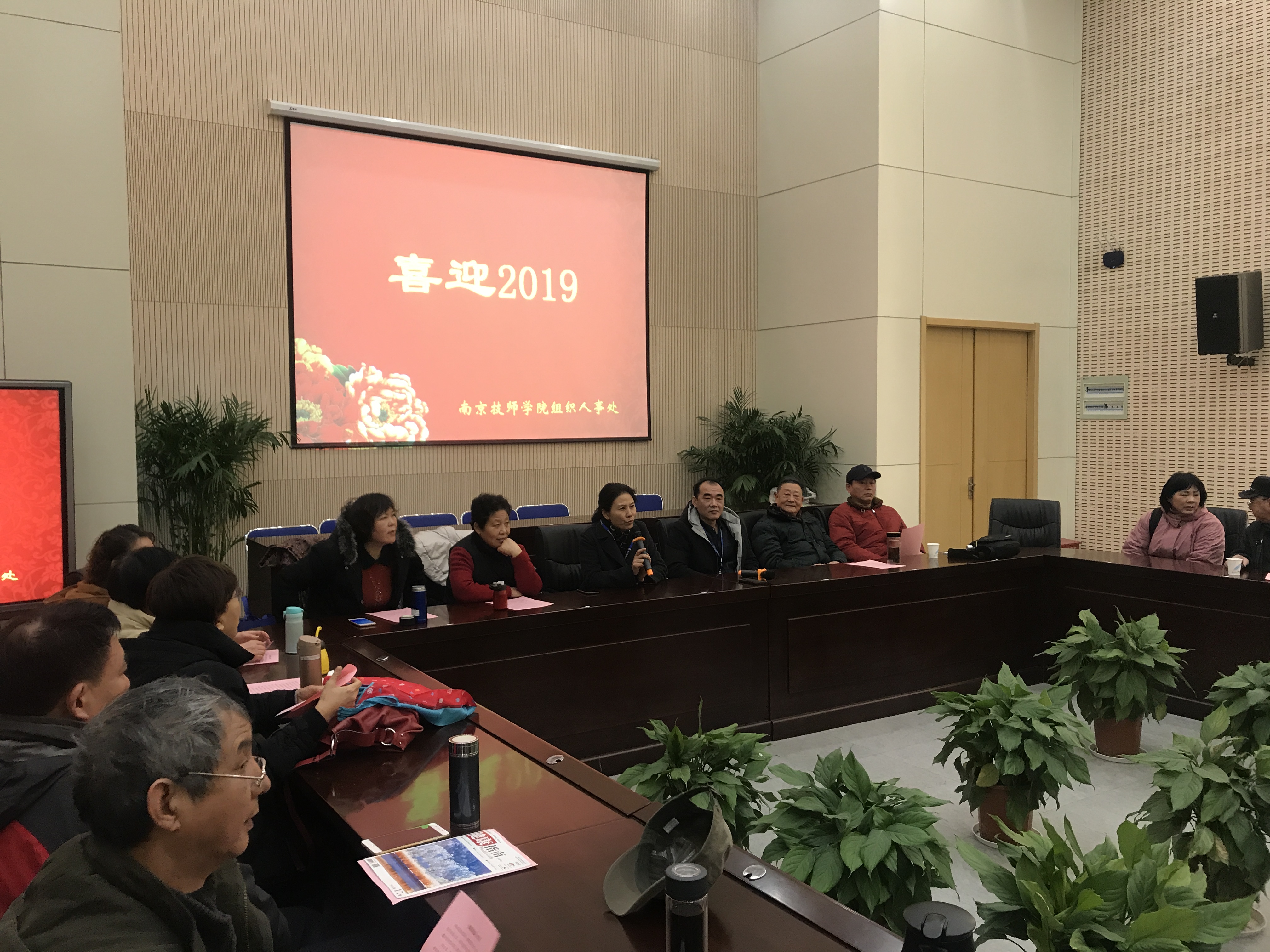 2019115日,学院实验楼一楼会议室喜庆洋溢、欢声笑语,新春佳节即将来临之际50学院退休老干部欢聚一堂,喜迎新春,共话发展。学院党委书记、院工会主席张金梅及院长侯放出席会议,向老同志们致以诚挚祝福和亲切的问候