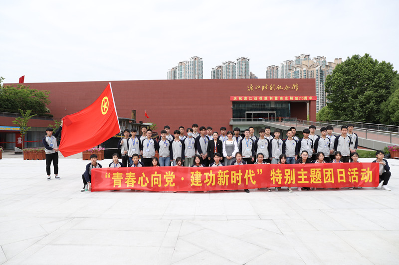 纪念馆广场上,同学们慷慨激昂地唱起国歌。院团委副书记王辉老师致辞,告诫学生不忘历史,传承遗志,勤学技能,不负青春。叶俏瑜老师现场开讲五四运动主题微团课,重温奋斗历史,传播革命精神。接着,团员代表陈晔洋同学进行团旗下演讲,高端同学带领全体学生进行面向团旗宣誓。两位老师为新团员佩戴团徽,全体合唱共青团团歌。最后,同学们有序参观了渡江胜利纪念馆,并写上对本次活动的感悟张贴在展板上。