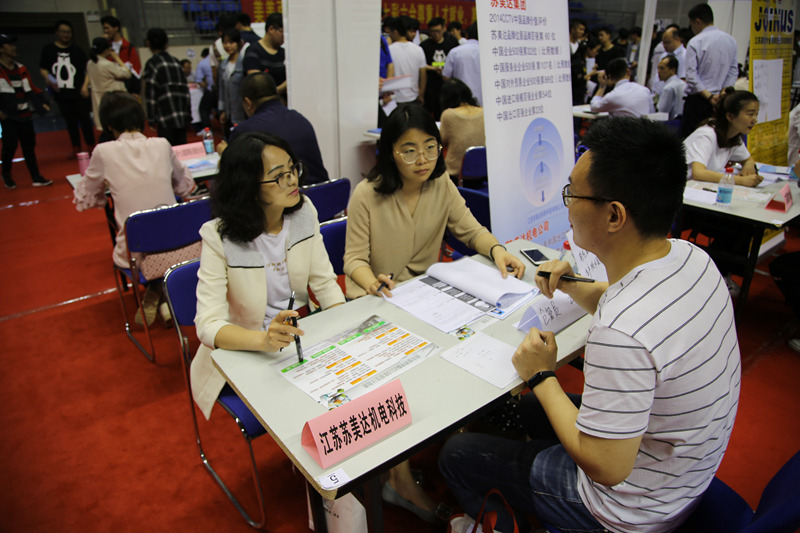 为进一步落实千亿官方网站2019届毕业生就业工作,搭建用人单位与毕业生双向选择的优质平台,同时也为专业建设提供市场需求信息服务,切实帮助企业解决专业对口人才招聘难题,5月17日上午9点,由千亿官方网站主办,六合区、高淳区劳动就业服务管理中心承办的2019年校园招聘会顺利举行。80家企业携带2500个就业岗位进场,1100名毕业生携简历求职,供需比约为2.3:1。