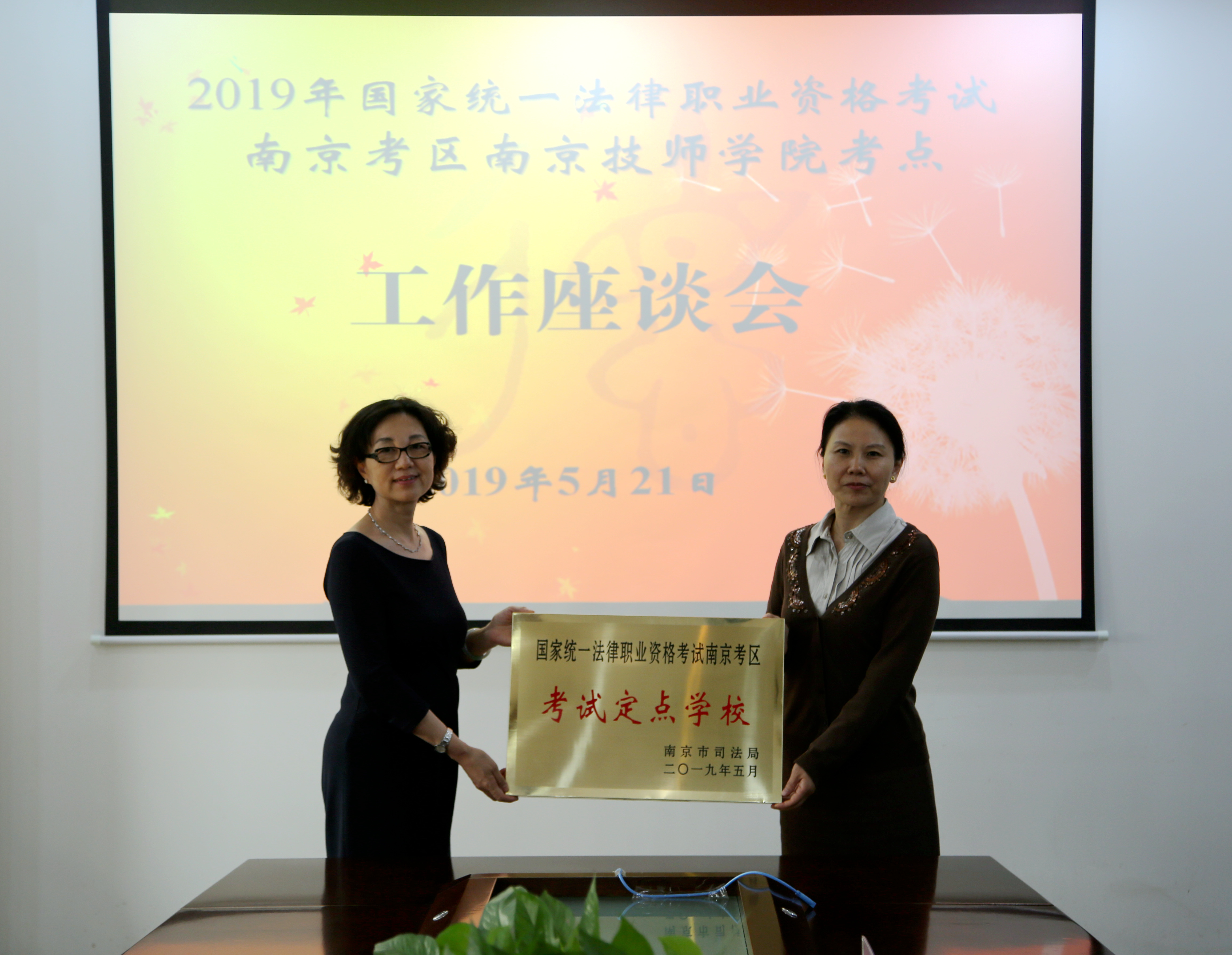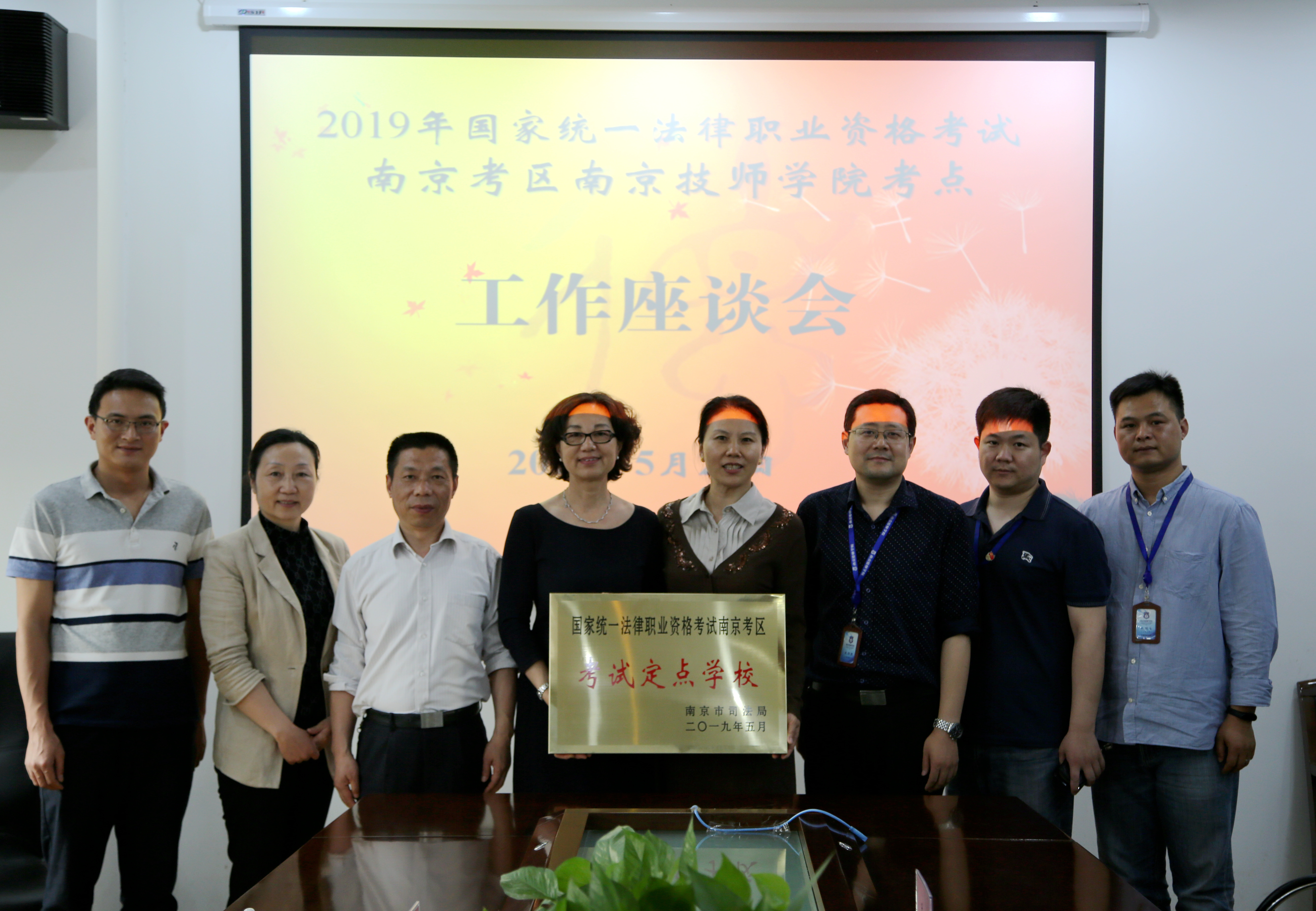 5月21日,2019年国家统一法律职业资格考试南京考区千亿官方网站考点工作座谈会在我院召开。南京市司法局巡视员苏郑、司法考试办公室处长温金富、我院党委书记张金梅、副院长朱胜强及相关负责同志参加会议。