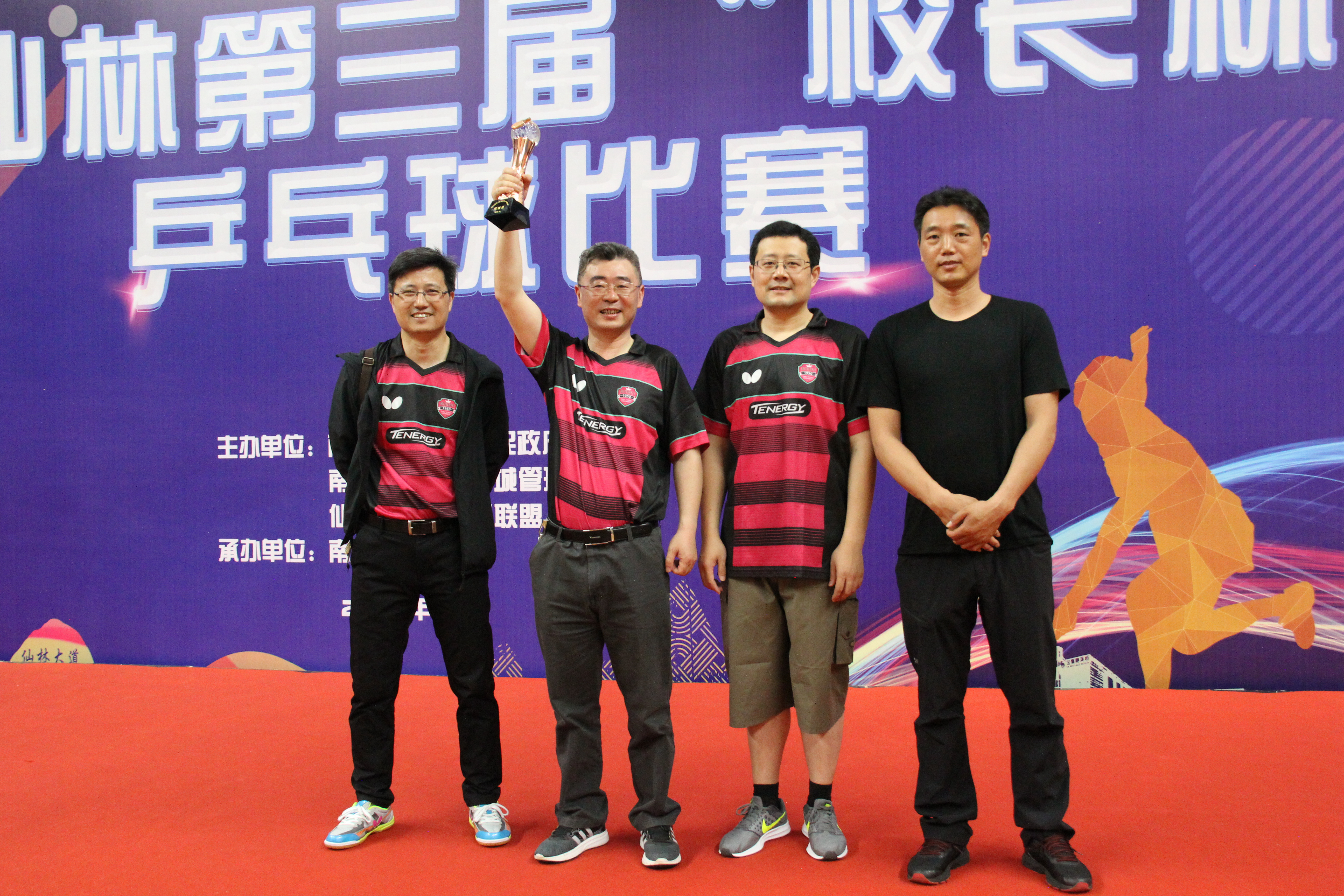 2019年5月25日,南京仙林第三届“校长杯”乒乓球比赛在南师大体育馆火热开赛。我院领导组成千亿官方网站代表队参加了此次比赛。比赛中,平时工作严谨、认真的院领导们不畏劲敌、敢打敢拼、相互鼓励、顽强拼搏,最终在高手林立的仙林大学城拼出了自己的风采,获得了优胜奖。