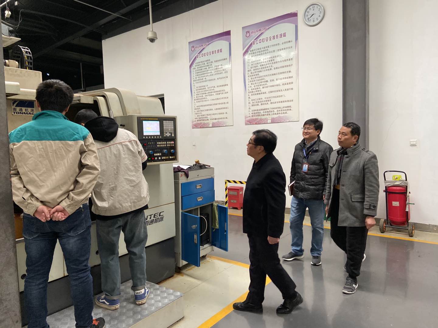 调研组参观了学院汽车、数控、机械、电气等实训场地以及机器人国赛训练基地、电气装置市赛训练基地并给予充分肯定。座谈会就我院学制专业、教学师资、大赛获奖、技能培训鉴定、国际办学、校企合作等方面进行深入交流。赵院长表示希望借助南京职教联合会的平台,了解智能制造等领域最新动态,参与行业相关活动,特别是围绕如企业新型学徒制等国家一系列关于职业技能提升行动政策中的重要项目开展合作。调研组介绍了南京职教联合会有关情况,并表示将整合平台资源为会员单位服务,为学院匹配、对接合适的资源,助力职业教育发展。