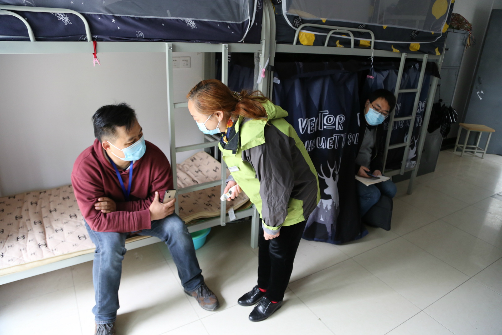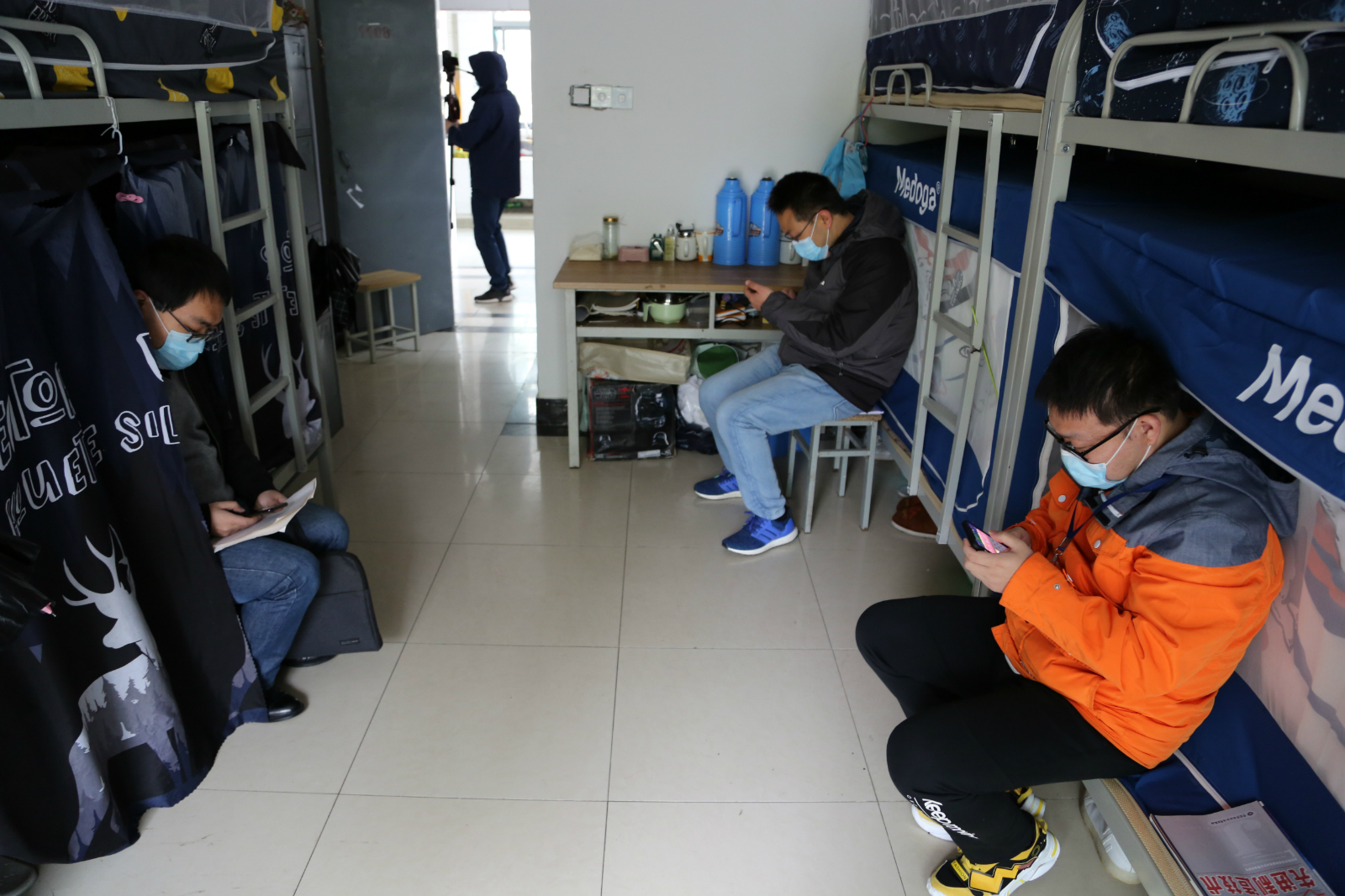 中午,住校生约20人保持1米以上的间距,按要求从管控通道按顺序进入宿舍。