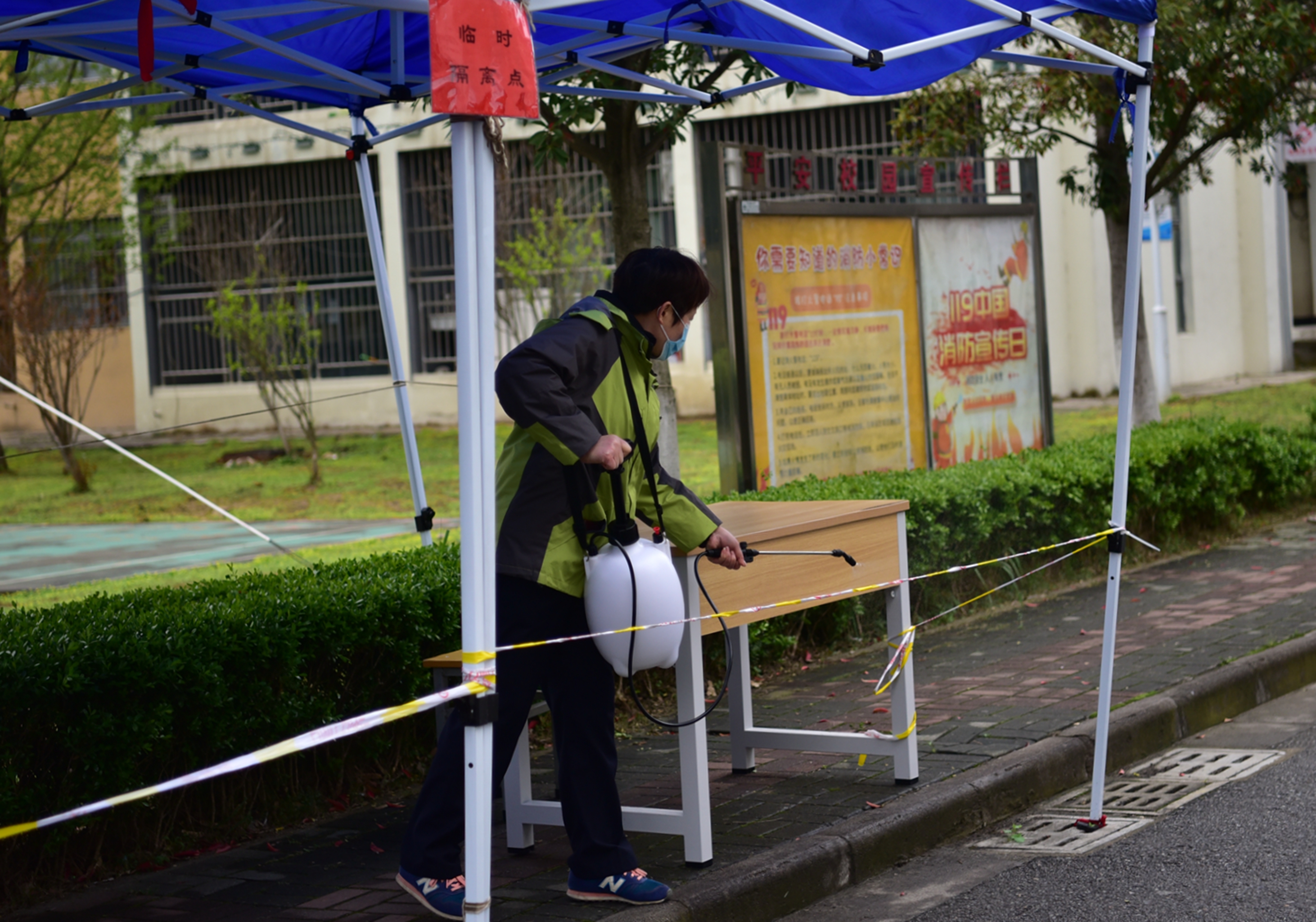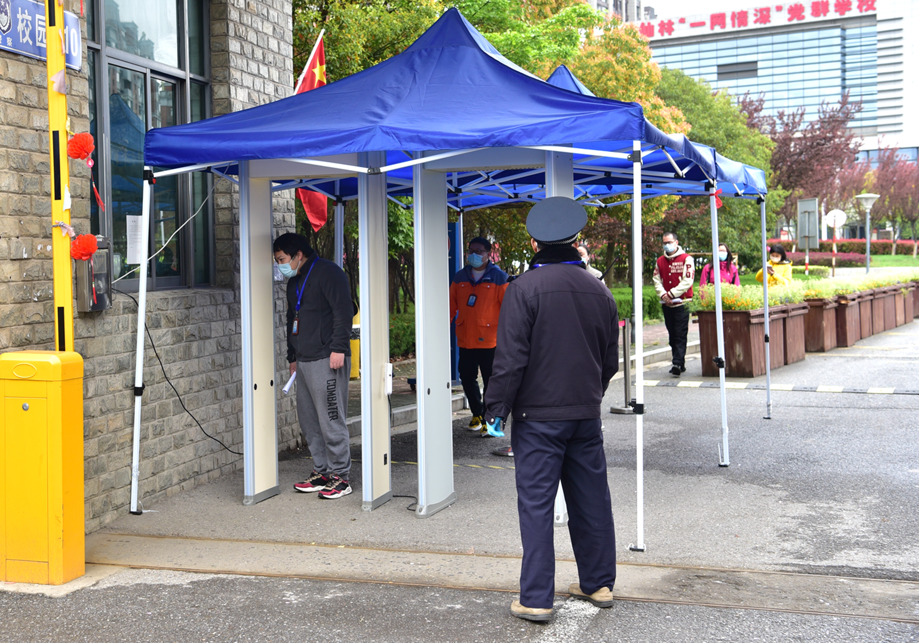 检测出某住校生体温超过37.3度,立即带到临时隔离点用水银温度计复测体温。