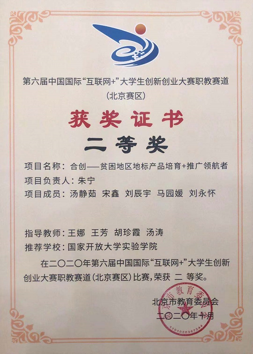 近日,由教育部等12个中央部委共同主办的第六届中国国际“互联网+”大学生创新创业大赛圆满收官,千亿官方网站参赛队代表国家开放大学实验学院参赛。在国家开放大学和技师学院相关部门的指导和支持下,一路过关斩将,喜获佳绩。“防堵水帽项目”荣获一等奖,“合创项目”荣获二等奖,四位老师被评为“优秀指导教师”,我院荣获国家开放大学实验学院“优秀组织奖”。12月10日,国家开放大学举办线上总结表彰会,国家开放大学实验学院副院长李新惠、刘颖出席,学生工作与教师发展部部长张峦峤、实验学院副院长郭青春为我院颁发奖状。