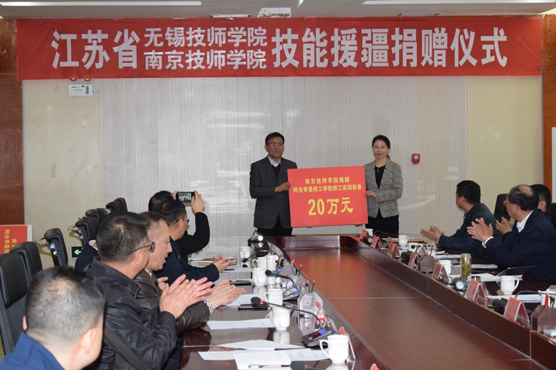 南京与阿合奇县虽相距近万里,但援建合作零距离。学院将相关帮扶措施细化,配套专项资金推进落实。结合阿校实际需求,确定三年行动计划,共同商定电工、汽修、焊接、美容等新疆急缺工种师资培养方案、实训场地规划、实习设备援建等八个方面的合作,并制定具体任务时间表和经费投入计划。援建的阿合奇县技工学校图书室的第一批书柜18个、图书300余册已经到位。12套电动机基本线路的控制板、一批电工常用工具、仪表以及训练耗材也已用于电工师资培训课程。相关经费在学院财务预算中优先安排,并根据项目开展和技工学校的基建进度逐步实施。