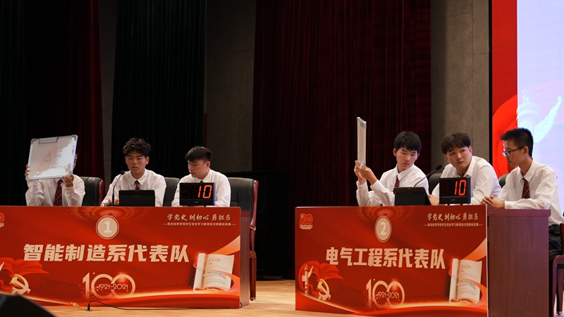 本次比赛以系为单位,各系均选派优秀选手,他们在比赛中展现出丰富的党史知识储备和积极向上的竞技精神。经过“步步为营”“耳疾手快”“一决高下”三轮激烈的竞争,最终信息技术系、智能制造系分别获得冠亚军。