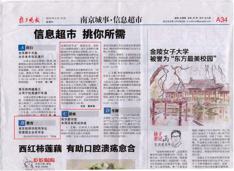 《扬子晚报》A34版—千亿官方网站两学生获德国企业奖学金