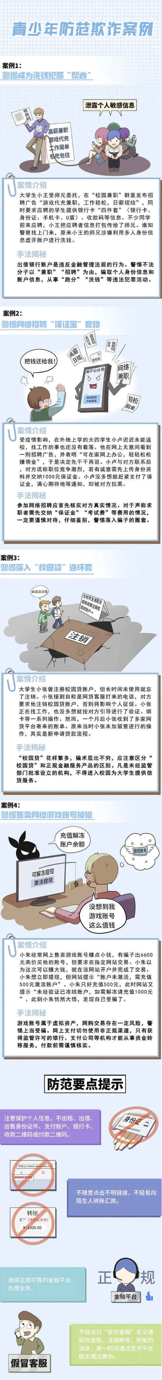为了加强学生反电诈教育,杜绝校园电信诈骗事件的发生,针对电信诈骗典型事件,特制作防电诈警示宣传图片,请全体同学认真学习加强防范。