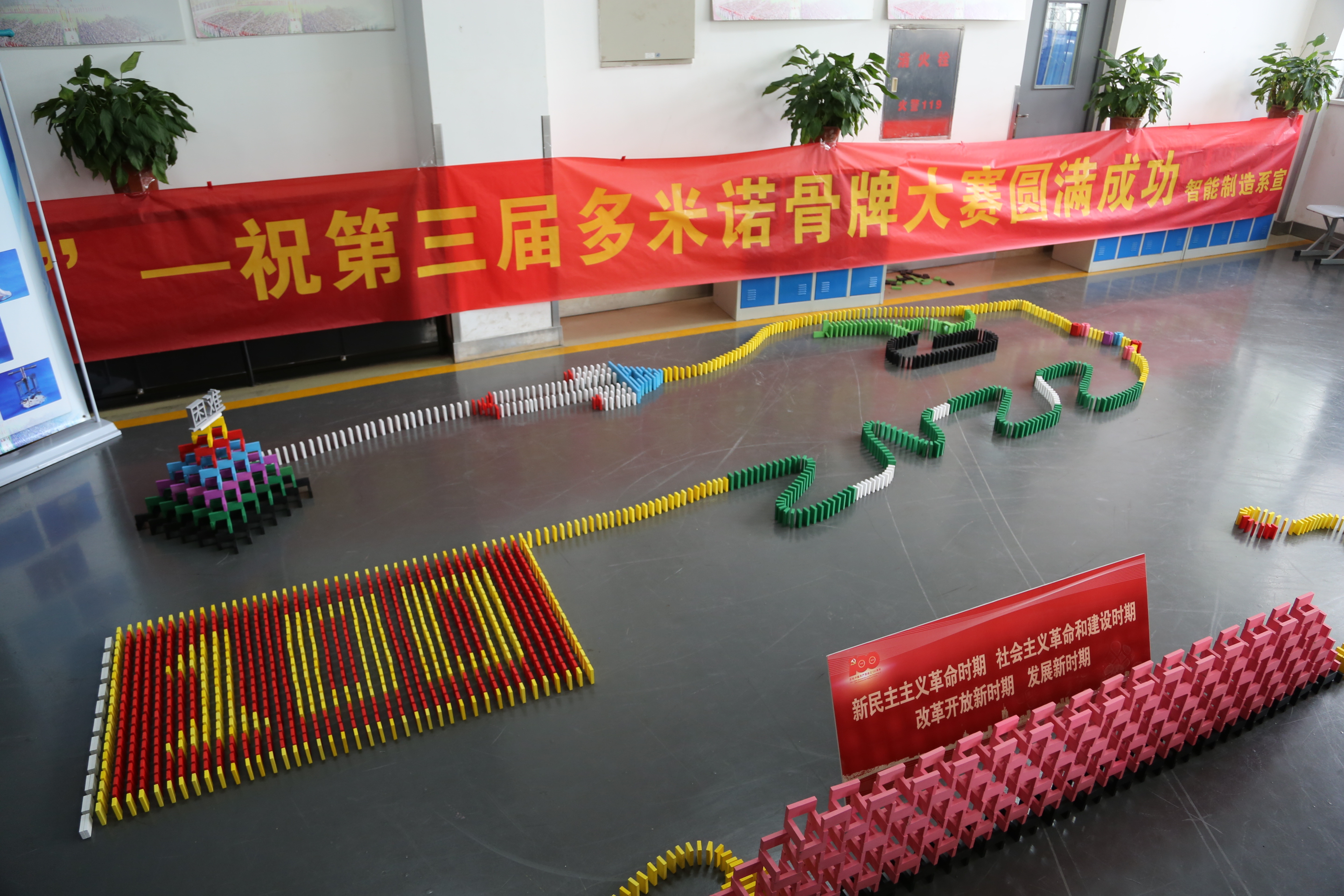 1210日下午,学院举办第三届多米诺骨牌比赛,此项比赛标志着学院第六届学生素质教育活动正式收官。本次比赛以系为单位,受疫情影响本届比赛由集中改为分散进行,化整为零,5支参赛队伍在各自准备的场地内紧贴“庆祝建党100周年”的主题,用心设计、精心拼搭,经过2小时的努力,以无穷的想象力将3200片骨牌展现出富有深刻寓意的图案。其中,信息技术系以“中国共产党百年历史的四个历史时期”为主线设计作品,智能制造系采用“无人机推倒技术”独特创意,使得比赛更具趣味性、挑战性和竞争性,博得在场观众们好评如潮。评委们秉持公平公正的原则,根据参赛作品的技术难度、观赏性、推倒成功率、寓意和使用的骨牌数等五大模块进行综合评分,共评出一等奖1个,二等奖2个,三等奖2个。