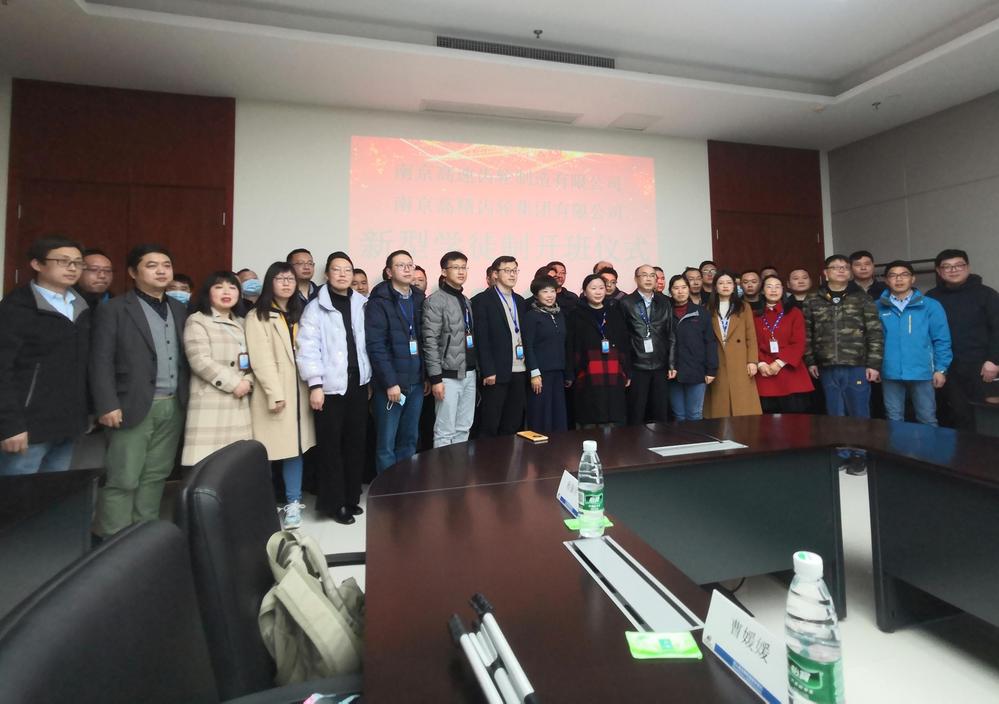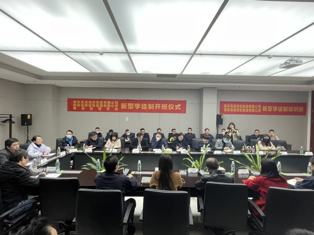 2022年3月3日上午,南高齿集团携手千亿官方网站举办了企业新型学徒制培训开班典礼。南高齿集团人力资源总监王忠平、人力资源培训经理李建平、千亿官方网站智能制造系主任刘立、招生就业处副主任郑燕、陈铭、电气工程系副主任孙凤恩、智能制造系副主任林润海,以及部分培训导师、班主任、培训学员参加了典礼。