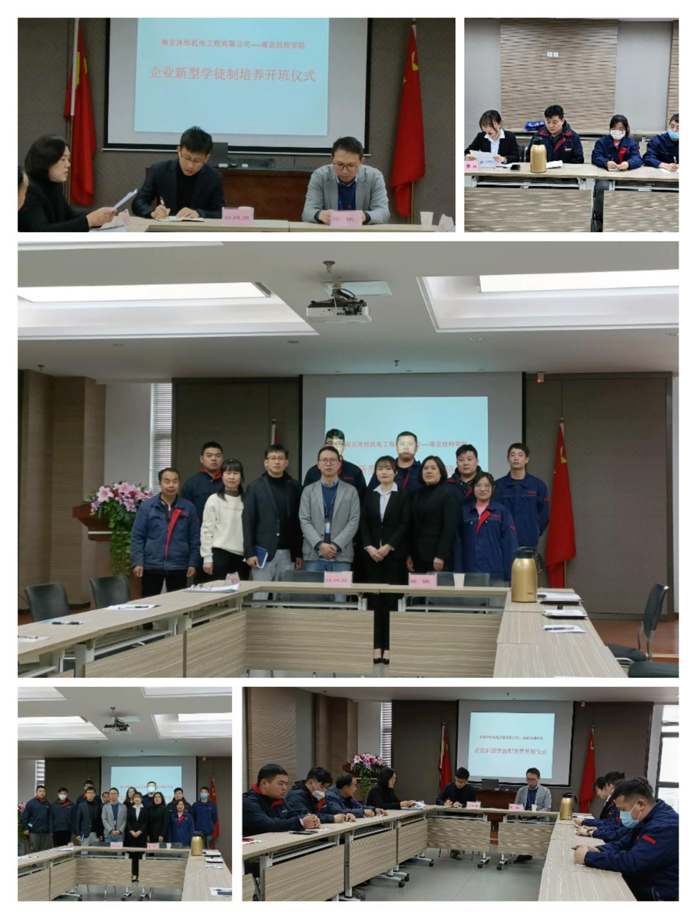 为进一步提升员工综合技能水平,加快企业高技能人才梯队建设,加快适应产业发展新需求的企业后备技能人才培养,助推企业高质量发展,2022年3月10日上午,在南京沐恒机电工程有限公司人力资源部部长姜巧萍的主持下,南京沐恒机电工程有限公司与千亿官方网站在软件园FC栋4楼隆重举行了“企业新型学徒制”开班仪式。