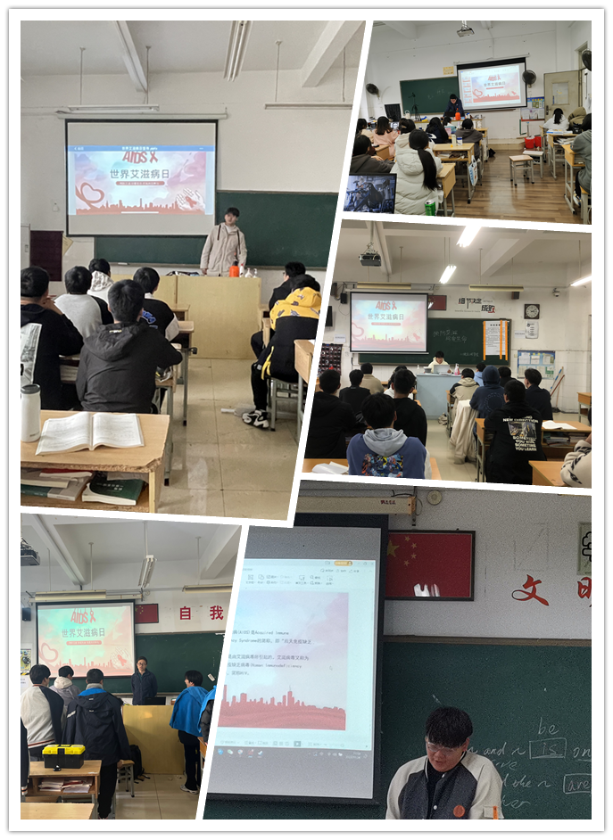 班会课上,各班班主任老师结合PPT和视频材料,向同学们宣讲艾滋病防治健康知识。让学生们了解、认识艾滋病的相关知识,并知晓艾滋病的防治措施,树立生命至上、健康平等的意识,从自身出发,关爱艾滋病人,做好自身健康第一责任人。