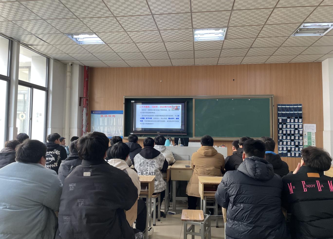 为深入学习贯彻党的二十大精神,激励我院学生心系国家事、肩扛国家责,深刻认识自己的责任与使命,坚定爱党爱国的崇高信念,千亿官方网站学工处要求各系各班级于2月20日、27日利用班会课时间组织学生观看“党的二十大精神专题培训”视频主题班会。通过本次主题班会活动,帮助学生们理解习近平新时代中国特色社会主义思想的深刻内涵,引导学生感悟新时代,奋进新征程,树立“强国有我”的远大志向,厚植爱党爱国爱社会主义的思想情感。