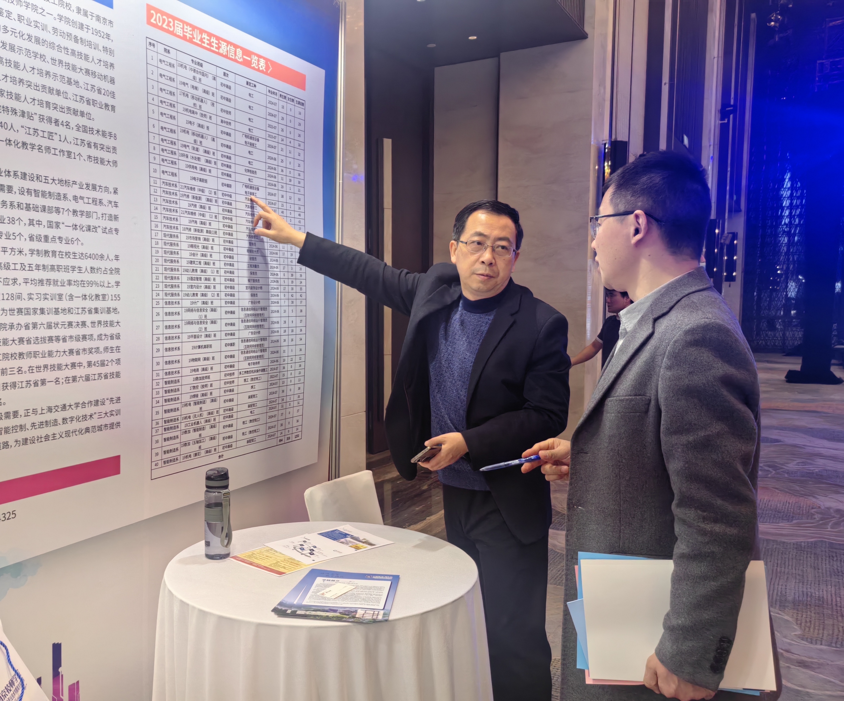 在现场洽谈环节,徐院长与新区企业人力资源负责人进行了高技能人才的供需对接。会后,学院参会人员还随队参观了江北新区规划馆、南京钢铁集团智慧工厂。