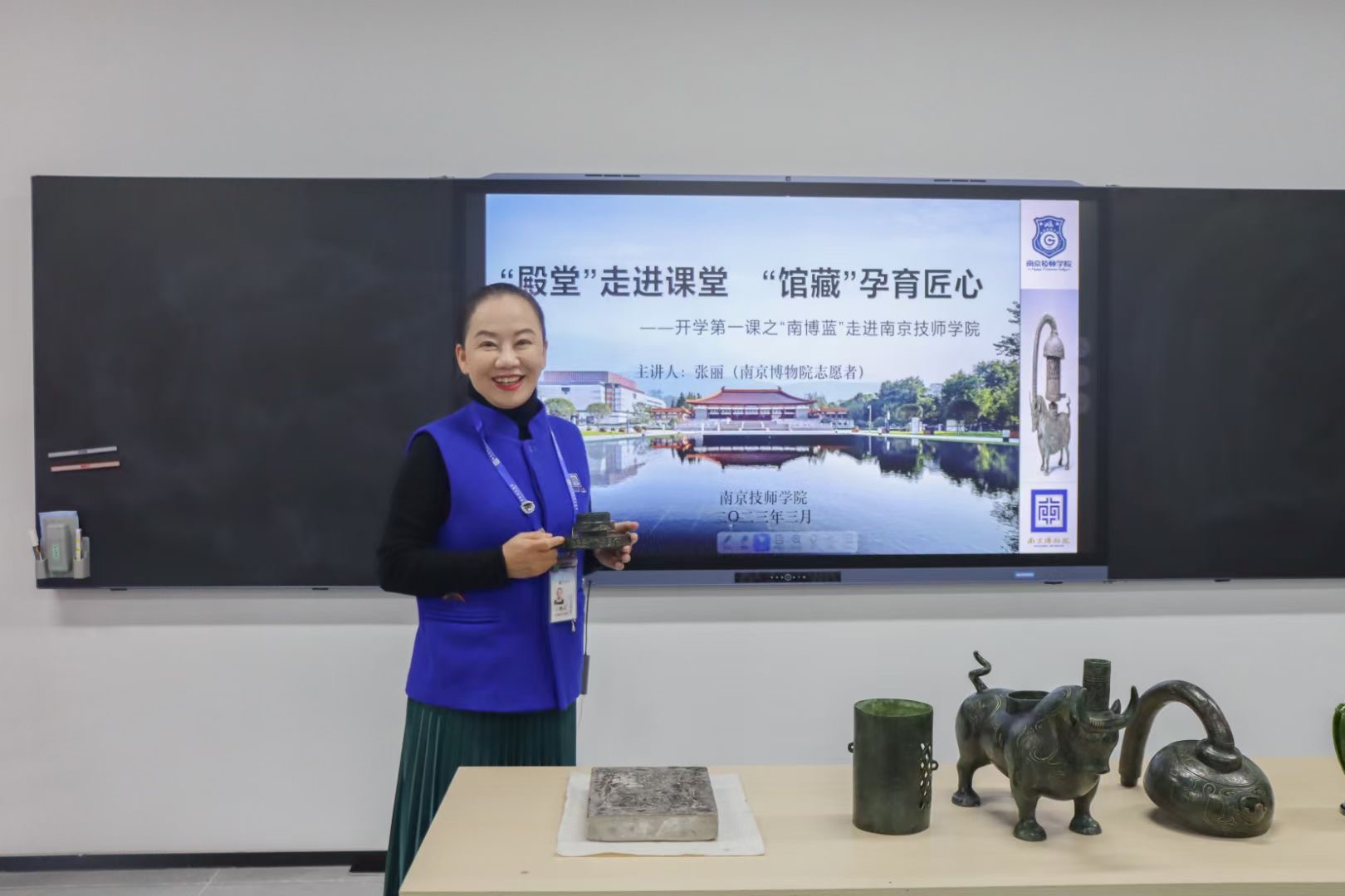 为全面贯彻党的二十大精神,弘扬中华优秀传统文化,让学生了解历史知识、体悟工匠精神、增强劳动意识、厚植家国情怀,2023年3月22日上午千亿官方网站“开学第一课”系列活动之文博专家进校园以“殿堂走进课堂,馆藏孕育匠心”为主题,邀请了南京博物院文物专家张丽老师作为开讲嘉宾,通过深度解读国宝级文物“错银饰青铜牛灯”等镇馆之宝,为学院师生开展了一堂别开生面、理论与实践相结合的公开课。
