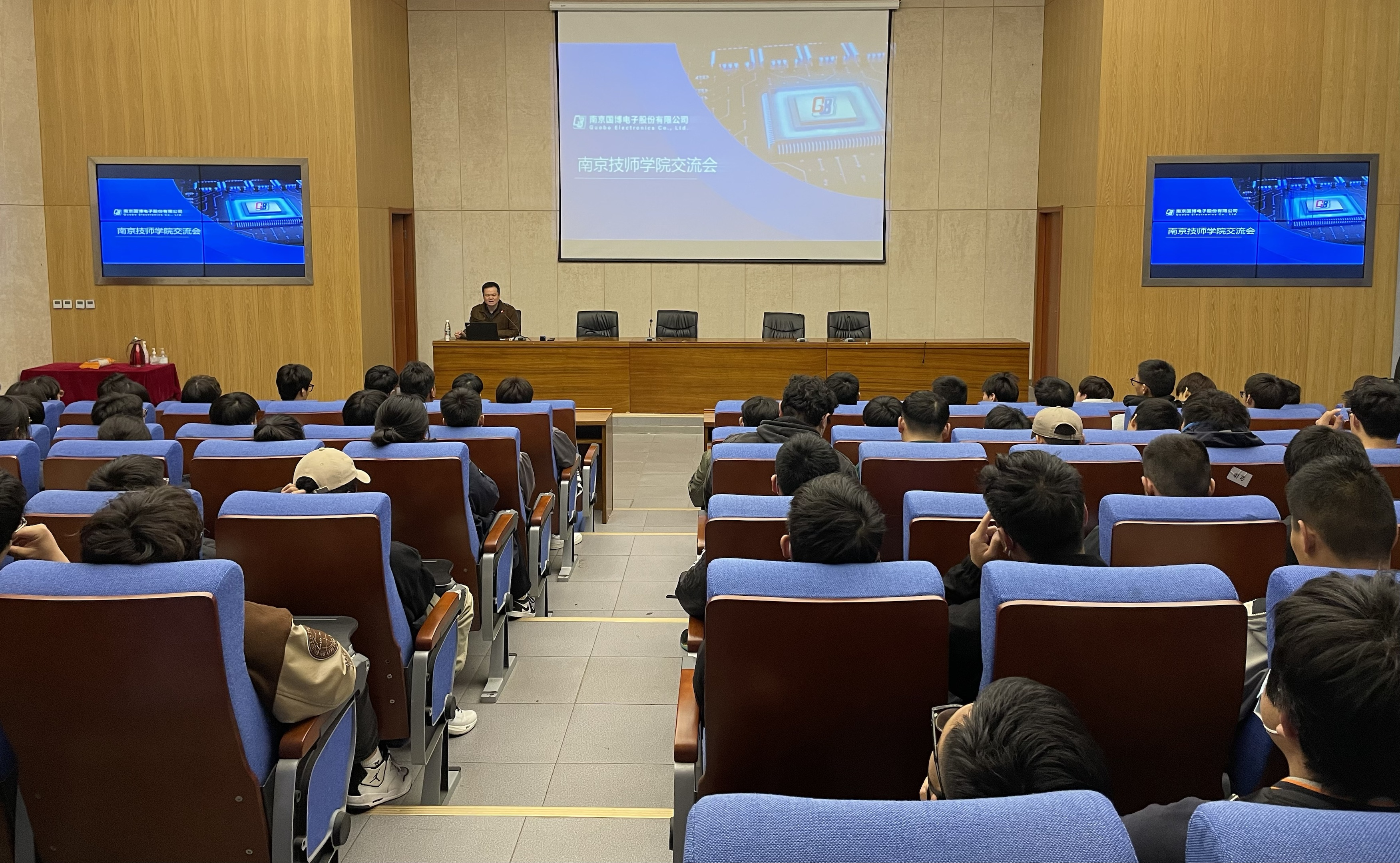 校企强手联袂,助力人才成长。南京国博电子股份有限公司作为有源相控阵T/R 组件及系列化射频集成电路相关产品的领先企业,与我院合作已久。4月6日,公司人力资源部总经理王家波及人力资源部主管韦静到校宣讲。王总以“岗位安全生产”为主题,从安全生产情况及安全生产基本知识、急救的基本知识、安全生产规章制度和劳动纪律、防静电等四个方面,引用真实案例,深入分析了安全生产的必要性,强调了安全在岗的重要性。采用国博电子公司安全生产范例和岗位要求,创建虚拟场景,切实增强了学生的岗位安全意识和自我防护意识,使学生掌握了必要的安全知识和急救技能。作为人力资源管理方面的专家,王经理把自己总结提炼的“看宏观”、“看行业”、“看竞争”、“看企业”、“看自己”的职业规划“五看法”以互动形式毫不保留地进行了分享,现场气氛热烈,同学们踊跃回答,并收到了公司发放的学习奖品。韦静主管介绍了公司的发展历程,并欢迎同学们赴企业参观。