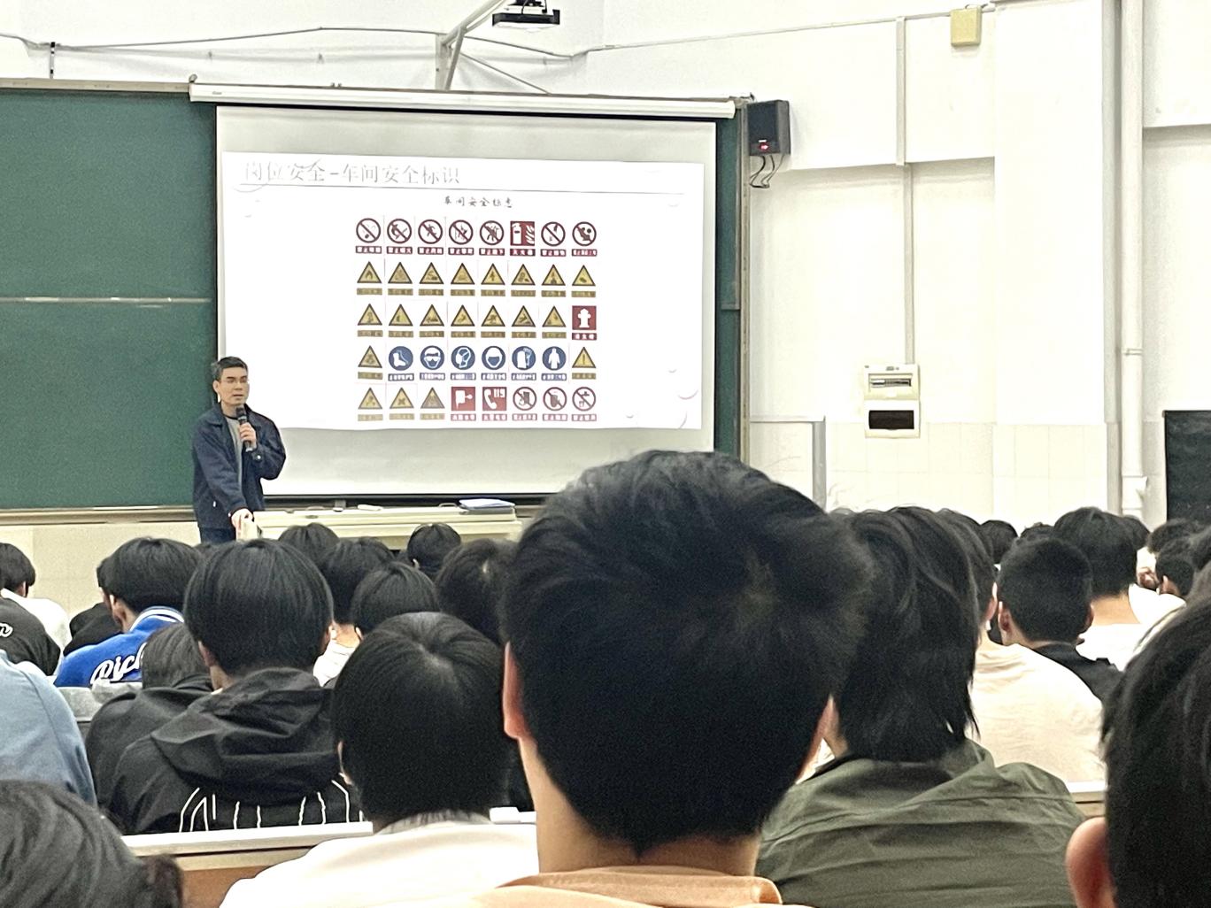 通过陈主任的生动讲解,学生牢固树立了“安全第一”的思想,更加强化了严格遵纪守法,遵守实习单位的有关制度、管理规定和安全操作规程重要性。