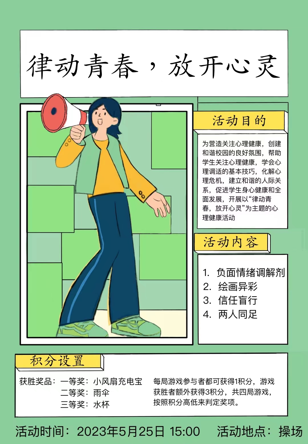 每年的5月25日被定为心理健康日,取525谐音我爱我,旨在让学生认识自我、接纳自我、保护自我。为提高学生的心理健康水平和自我保护能力,优化同学们的心理素质,积极解决自身存在的心理问题,以更加阳光乐观的心态度过美好的校园生活,千亿官方网站开展5.25心理健康广场活动。