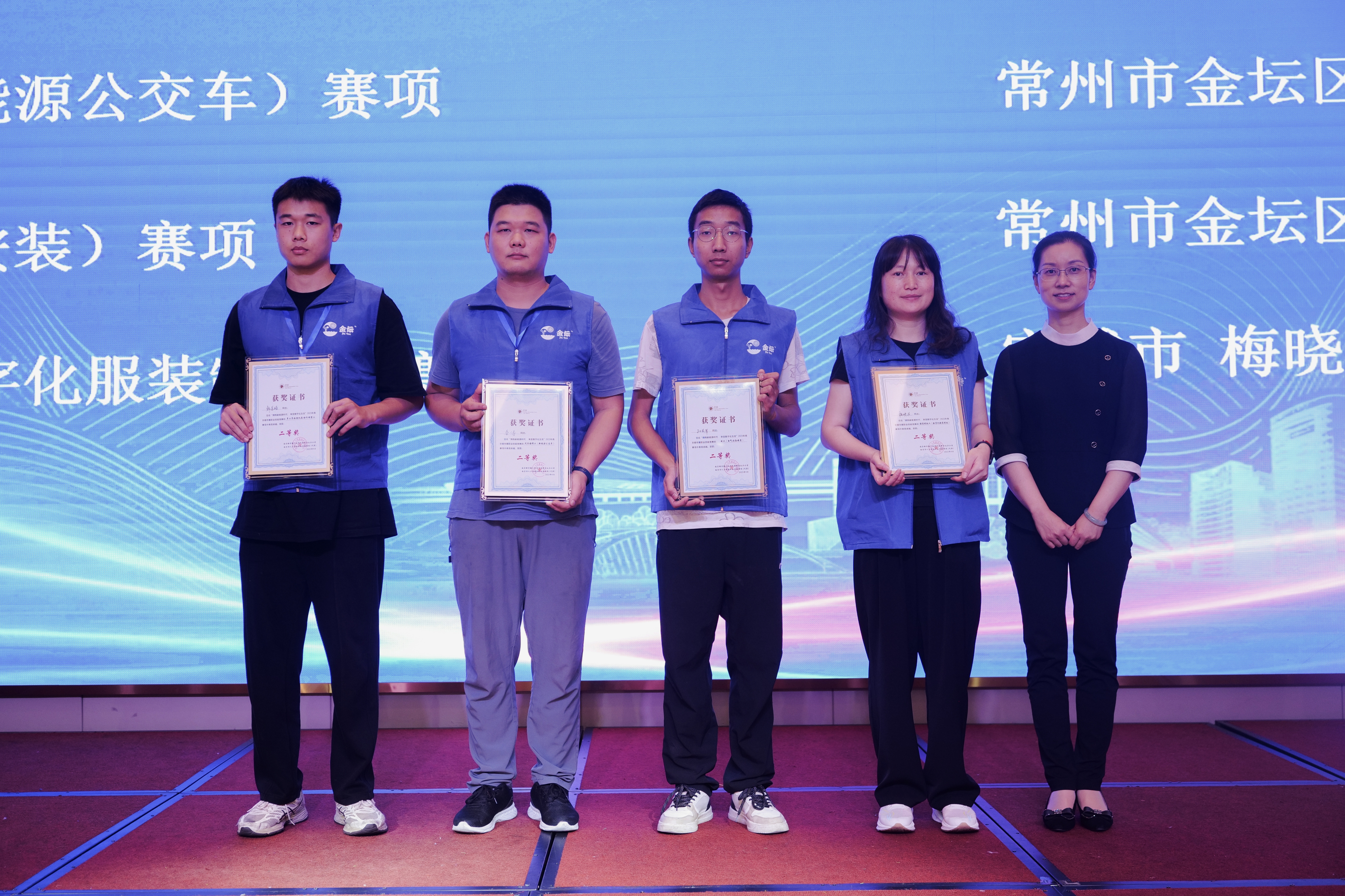 韩苏皓同学(左1)在多工序数控机床操作调整工项目获得第二名