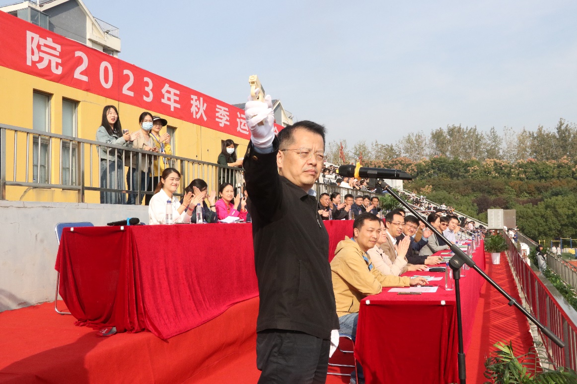 10月25日上午,千亿官方网站2023年秋季运动会隆重开幕。南京市人力资源社会保障局党组副书记、副局长施军,学院党委书记张金梅,院长侯放,副院长赵杰、俞岚、徐建华及各处室、系部负责人出席开幕仪式。院长侯放致开幕词,副局长施军宣布运动会开幕并首鸣发令枪。