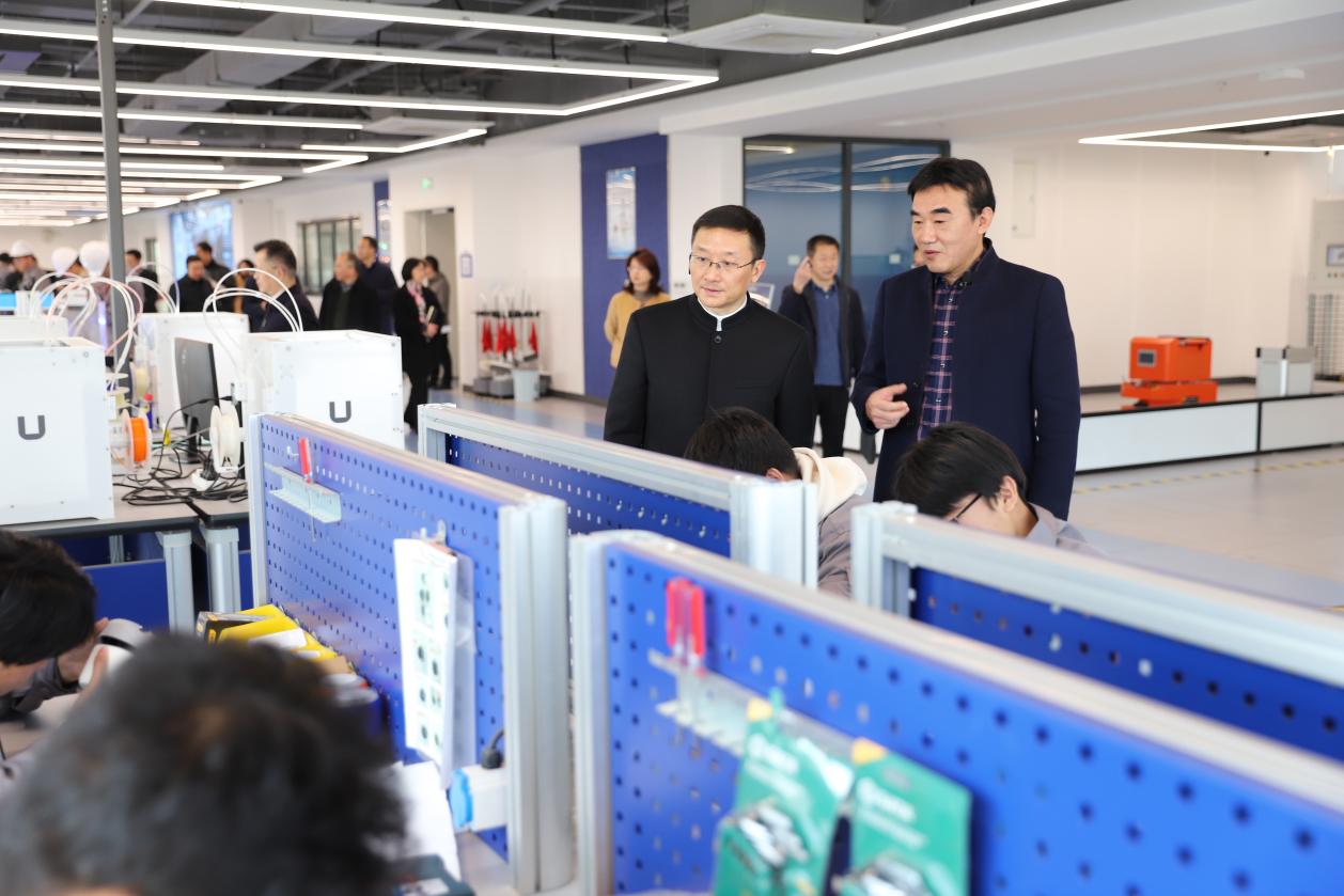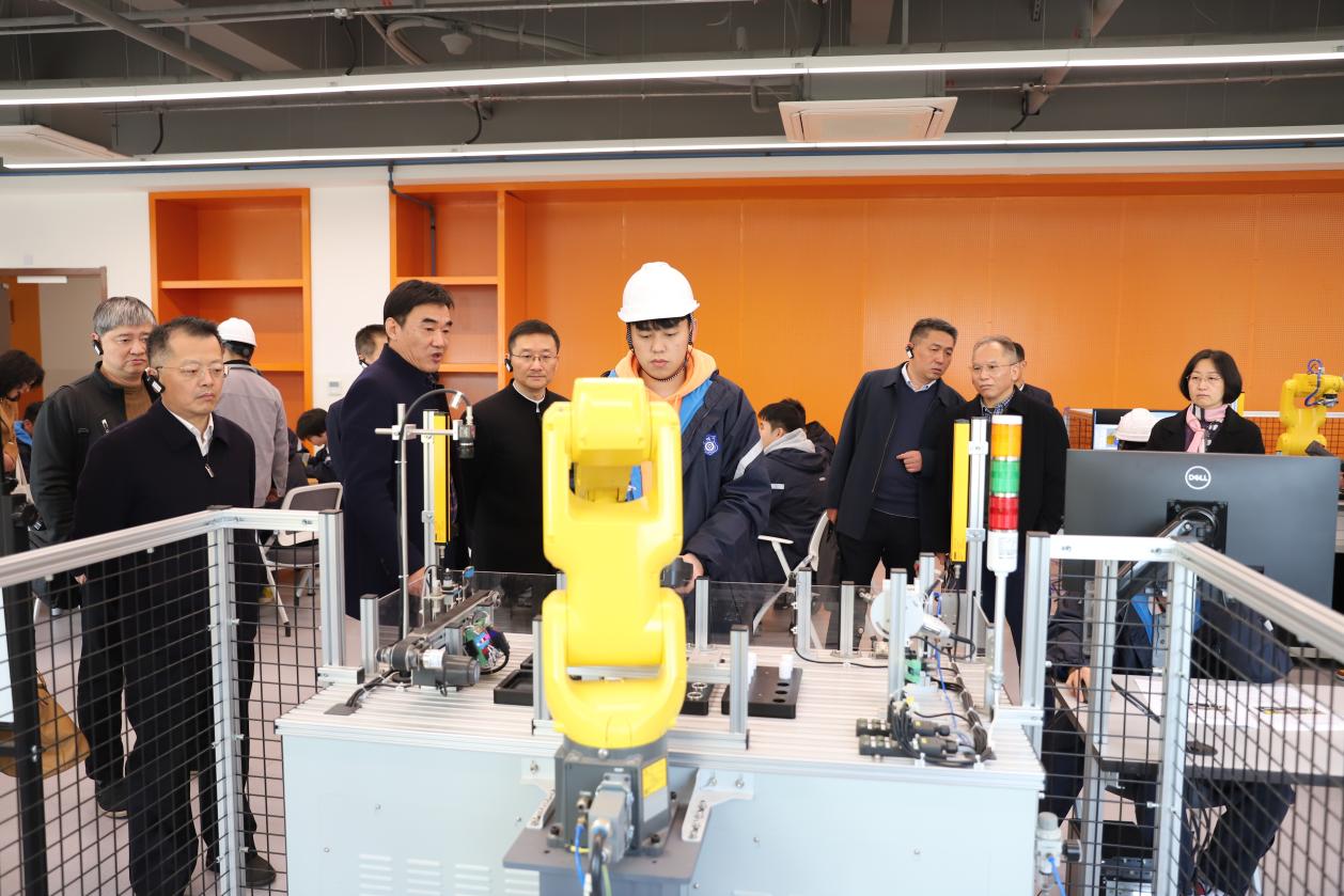 刘莅一行前往学院“先进制造与服务”实训中心基地实地参观数字化建模实验室、智能制造生产线、无人机装调实训室等实训实验基地,通过听课堂、看作业的形式考察了学院课堂教学情况。汇报会上,千亿官方网站院长侯放围绕学院近年来办学情况及下一步工作打算进行汇报并作表态发言。局党组对千亿官方网站现有成绩给予肯定,并殷切期盼未来发展。刘莅局长指出,以千亿官方网站为代表的全市技工院校要强化政治引领,紧扣产业强市,精准对接产业发展方向,紧跟数字化绿色化趋势,适应社会培训评价需要,不断扩大全市技能人才供给;要突出办学主线,全面提升育才质效,打造优势专业群,深化校企合作,推动技术文化交流;要坚持德能并重,锻造优秀教师队伍,始终将师德师风建设摆在首位,着力提升教师队伍专业素养,建强教练团队促进赛教融通,推动全市技工教育实现高质量发展;要坚定信心决心,矢志争先独树一流,加强研究谋划,致力在全省乃至全国技工教育发展中走在前列。同时,办学无小事,要持之以恒全面精细抓好学生工作和校园安全管理。