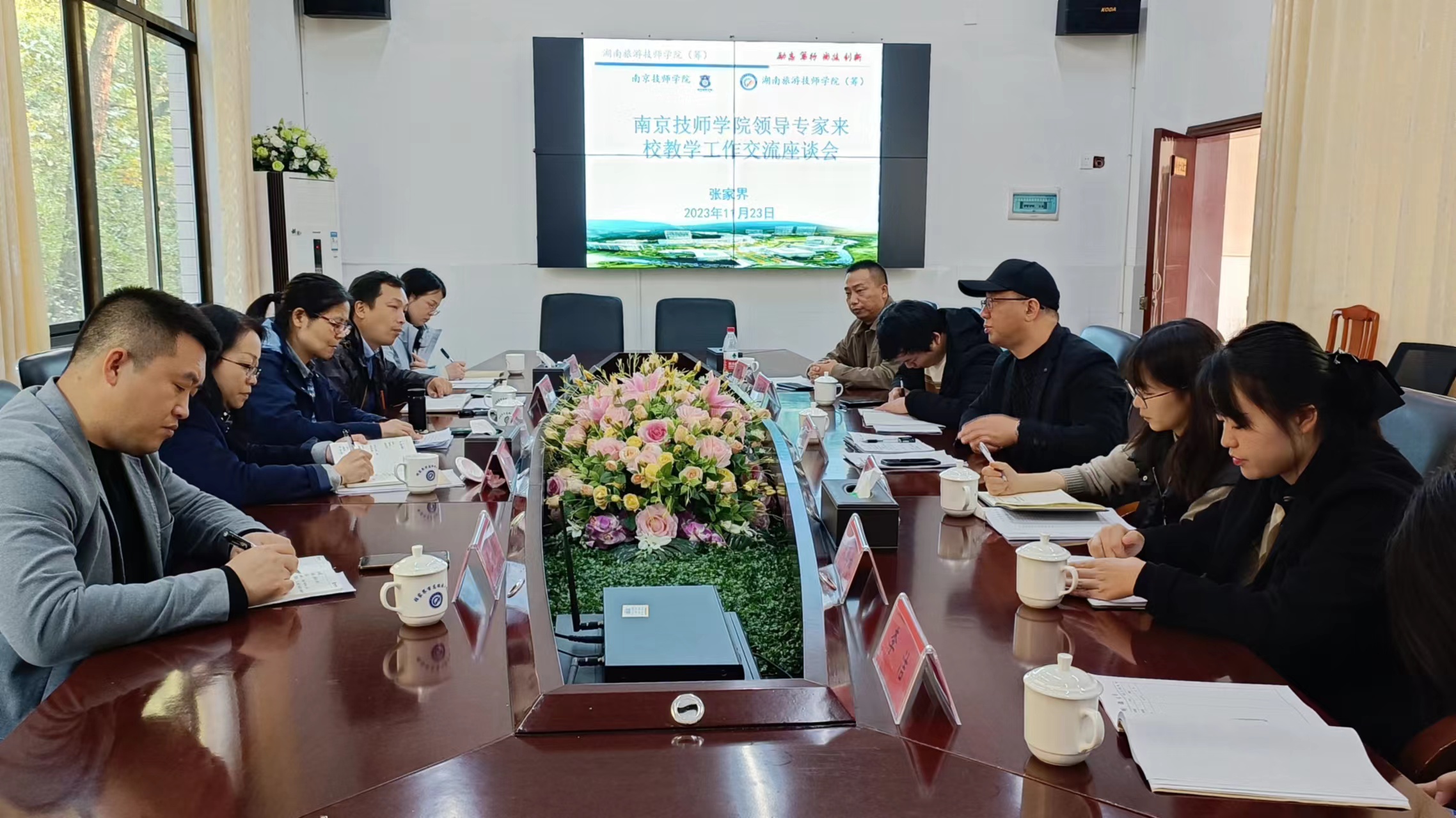 为深入贯彻《湖南省人民政府江苏省人民政府〈关于印发张家界市南京市对口合作实施方案(2022-2026)〉(湘政函〔2022〕186号)》文件精神,加强两市职业教育交流,进一步落实两校对口合作框架协议,11月22日至24日,千亿官方网站选派教务处处长鲍咏梅、学生工作处处长赵越、组织人事处副处长蒋琳、智能制造系教研室主任刘慧、教务处干事王华鹏等五人赴湖南旅游技师学院(筹)开展对口合作调研交流活动。