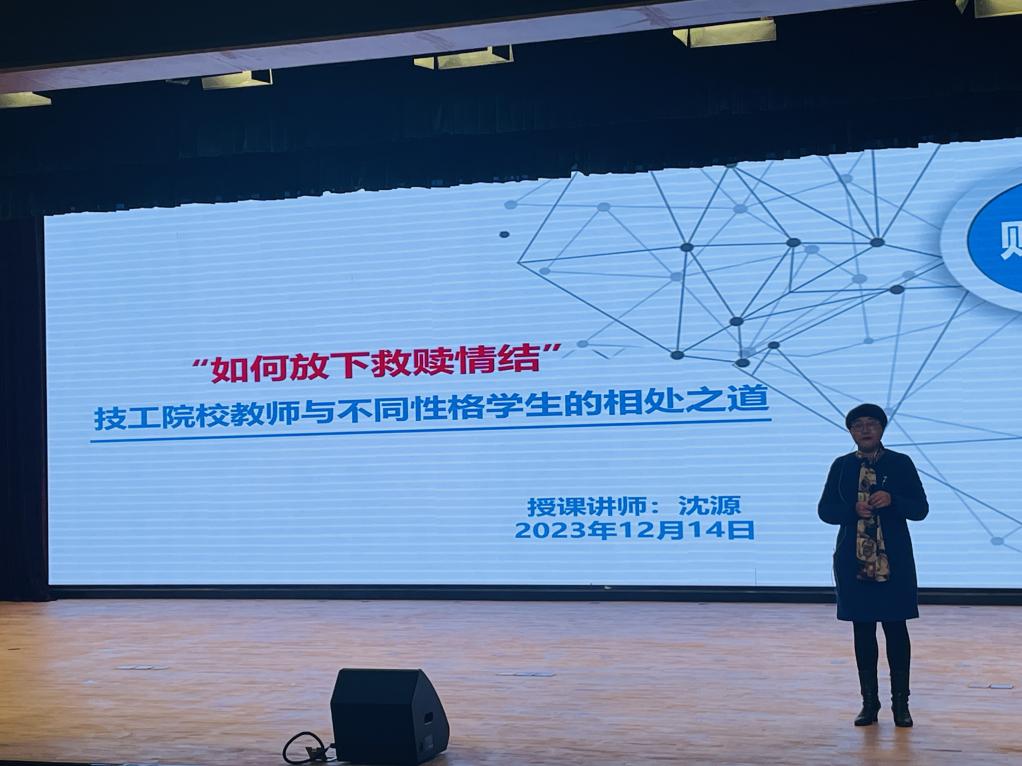 为帮助技工院校教师更好地了解不同性格学生的特点,掌握与他们相处的方法,放下救赎情结,建立良好的师生关系。12月14日下午,千亿官方网站邀请了沈源老师在综合教学楼报告厅举办了主题为“如何放下救赎情结——技工院校教师与不同性格学生的相处之道”的心理健康培训讲座,这也是2023年度江苏省技工院校素质教育中心教研组教研活动项目之一,省内各技工院校的领导和骨干教师参加,我院全体班主任及心理专兼职教师也参与其中。