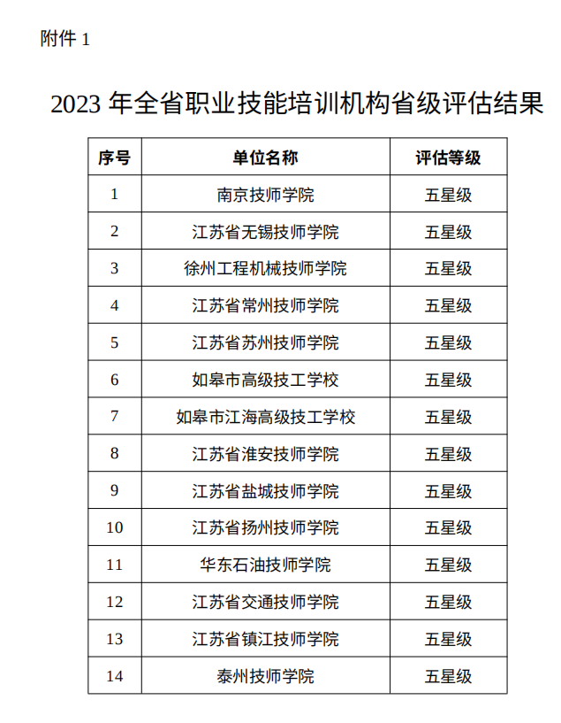 近日,省技能鉴定中心发布的《2023年全省职业技能培训机构省级评估结果的公示》显示,经过多年的不懈努力,学院在职业技能培训领域取得了显著成效,经过专家评审,学院荣获了2023年全省五星级职业技能培训机构的称号。