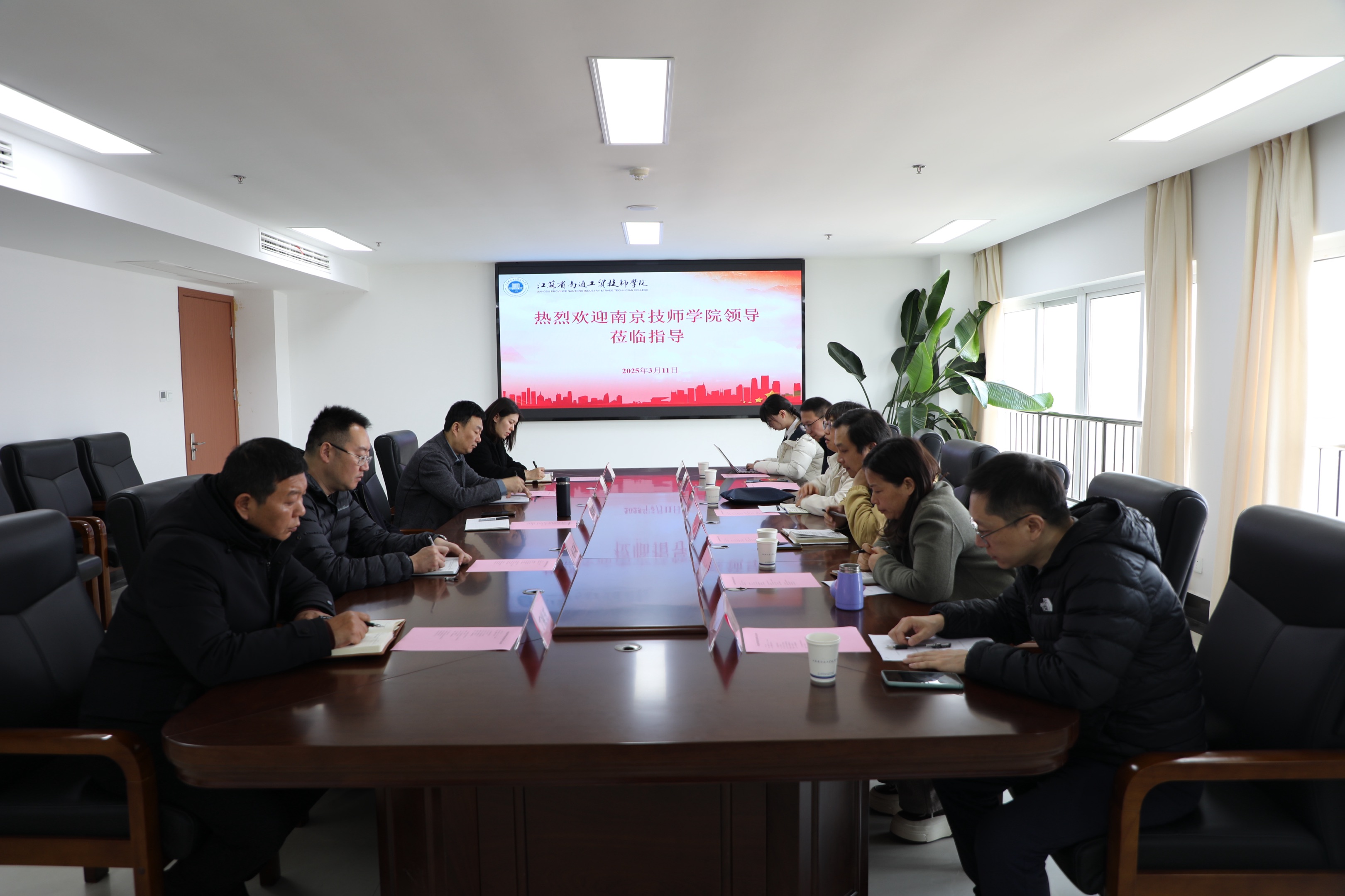 本次学习交流受到了江苏省南通工贸技师学院领导的热情接待,座谈会上,江苏省南通工贸技师学院党委书记张建、招生就业处处长公共基础部主任刘洪、学生工作处处长刘卫航等领导详细介绍了贵院相关工作经验及先进案例双方就招生宣传的模式和方法、学历教育开展情况、学生管理及班主任工作等方面进行深入探讨。