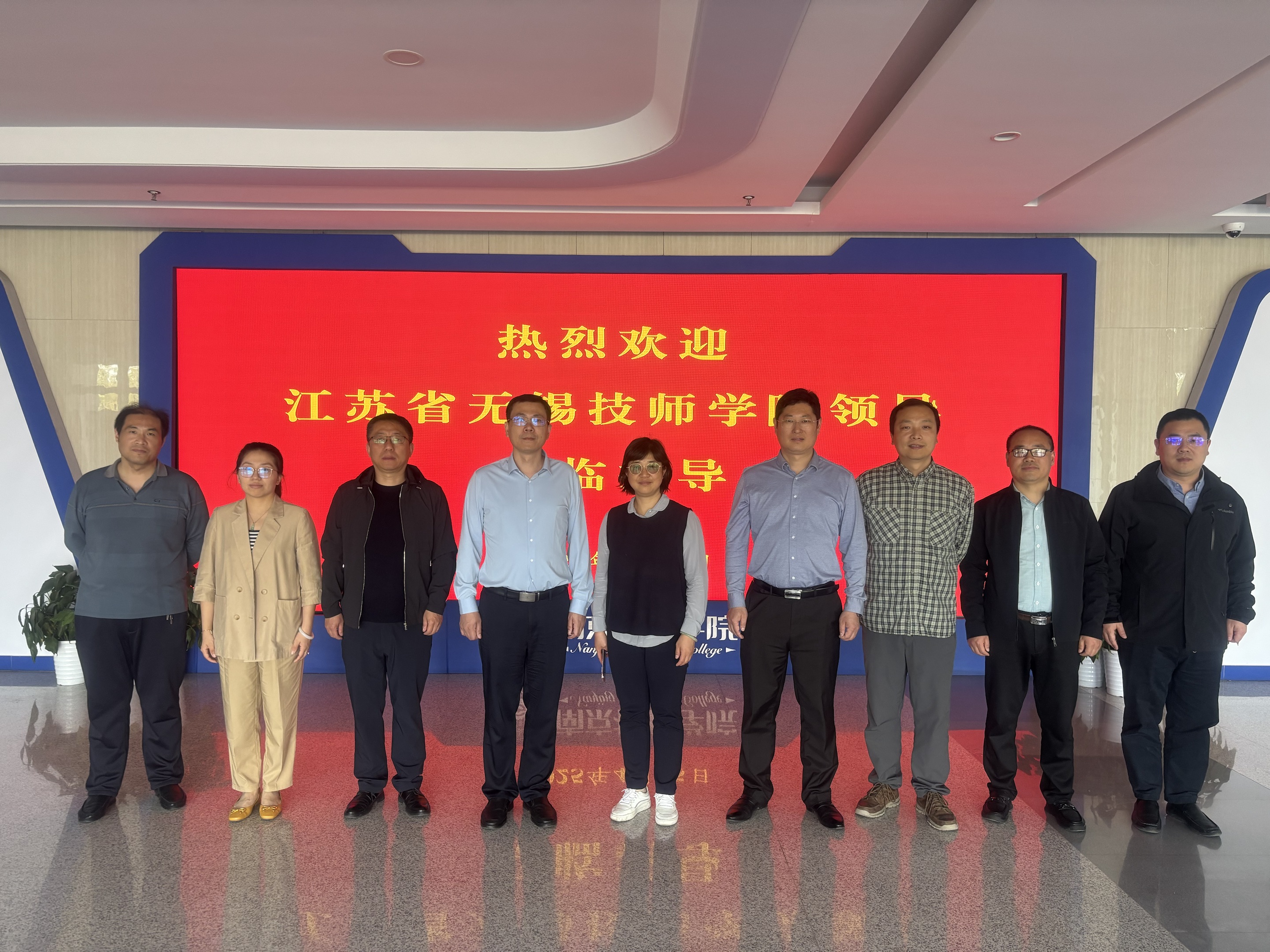 415日,江苏省无锡技师学院在院党委委员、院长薛梁的带领下,一行5人来到院进行参观交流我院党委委员、副院长纪委书记俞岚代表学院对来访的各位领导表示了热烈欢迎。