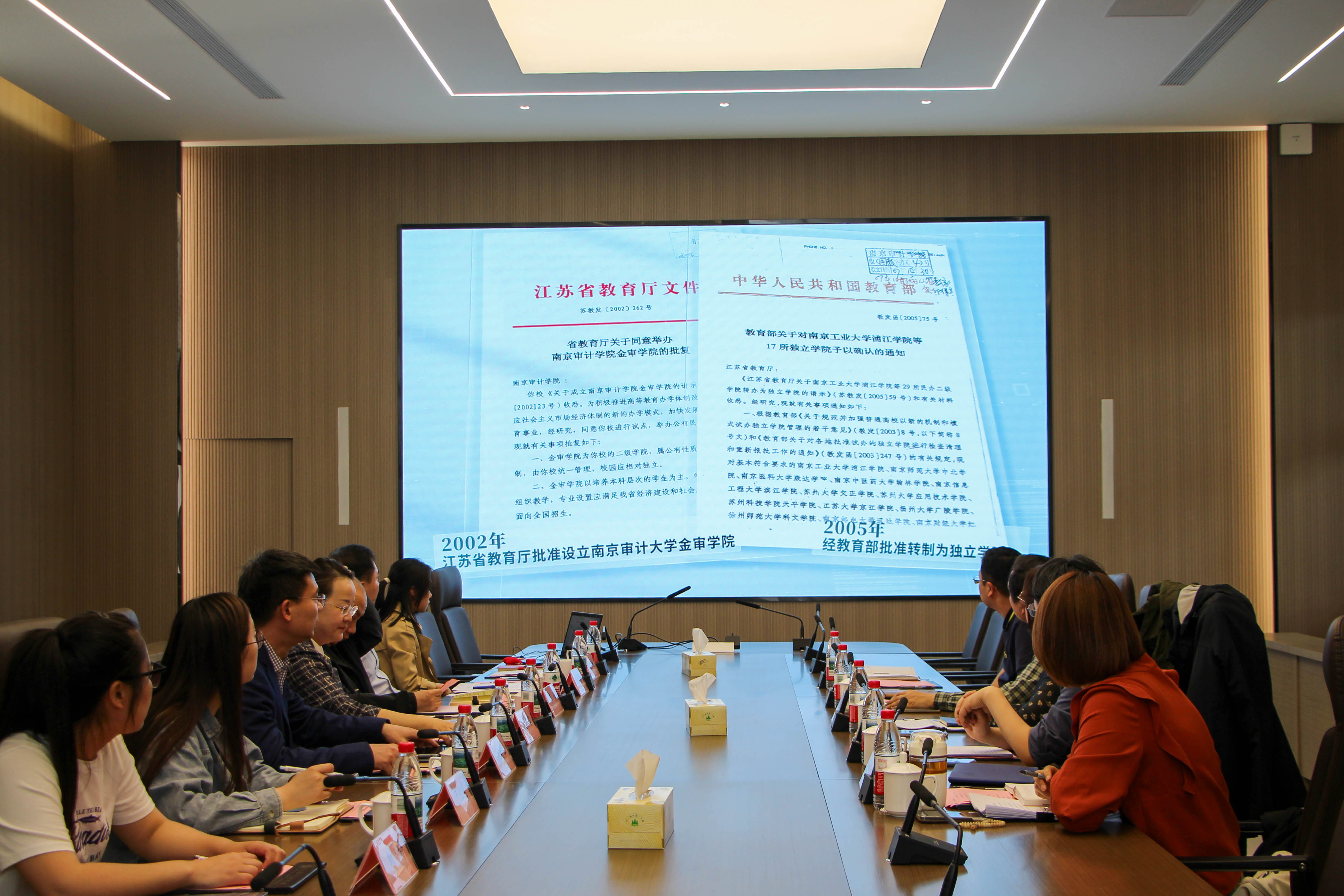 为进一步加强校际交流合作、学习高校教育教学管理、学生德育工作及信息化建设的先进经验和特色做法,提升我院综合办学水平,4月16日,我院党委委员、副院长、纪委书记俞岚,党委委员、副院长强飞带领学工、督导、信息中心部门负责人一行5人赴南京审计大学金审学院学习交流。南京审计大学金审学院党委委员、校长助理孟琪璐,信息化处处长李焕,质量评估处处长徐洪灿,学生处处长助理王志坚出席座谈会参与交流。