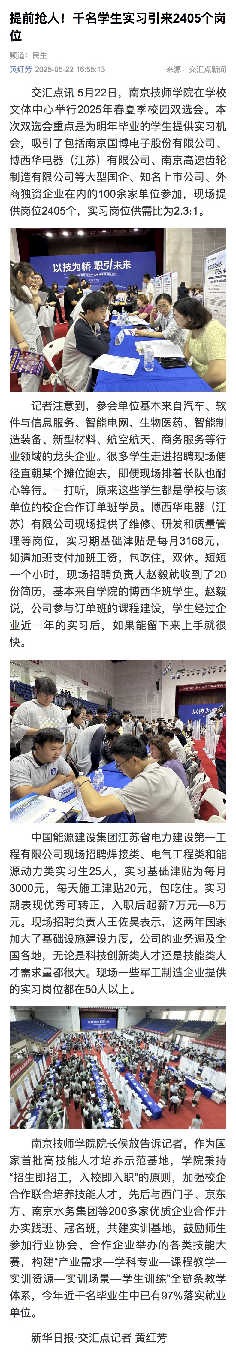 提前抢人!千名学生实习引来2405个岗位