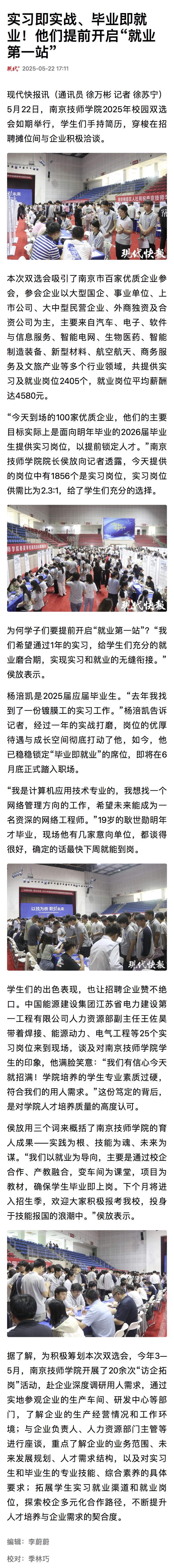 实习即实战、毕业即就业!他们提前开启“就业第一站”